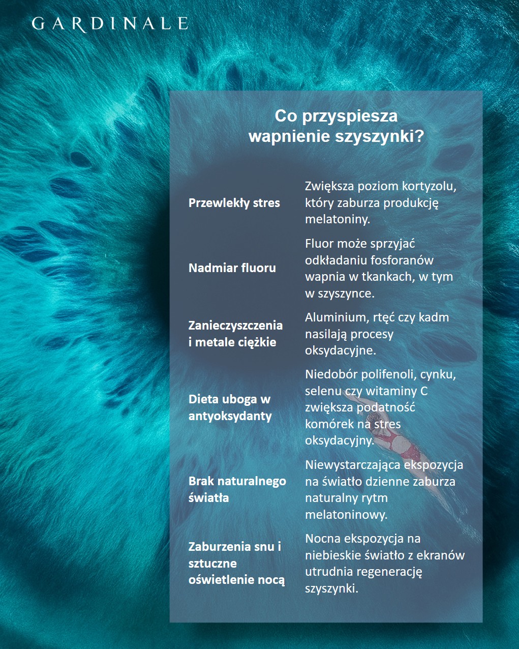 В результате шишковидная железа становится менее активной, а ее функции, такие как регулирование ритма сна, регенерация или ясность ума, могут быть ослаблены.