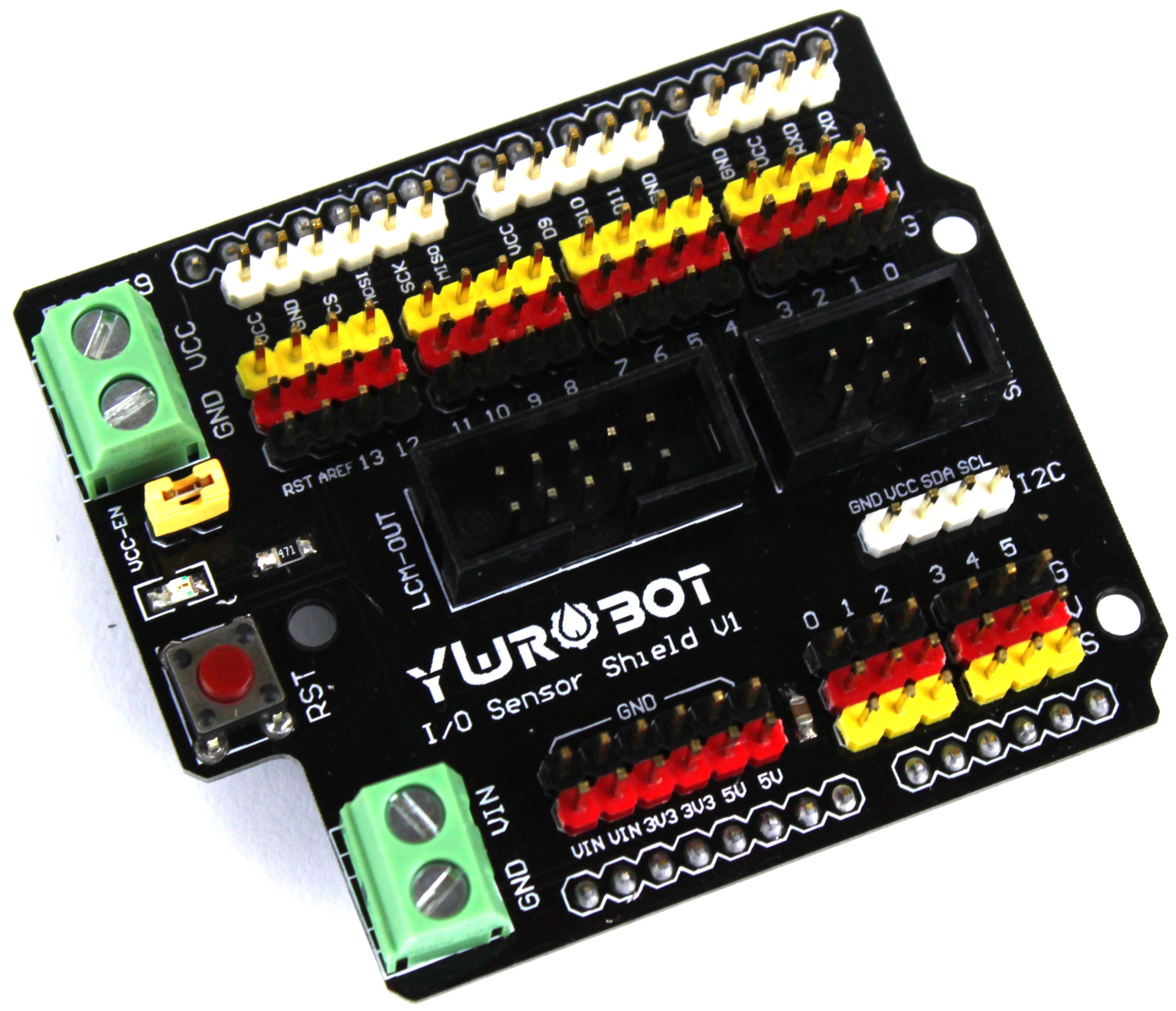 Щит датчика ввода-вывода — удлинитель для комплекта Arduino UNO R3, облегчающий подключение периферийных систем (датчиков, датчиков, дисплеев).
