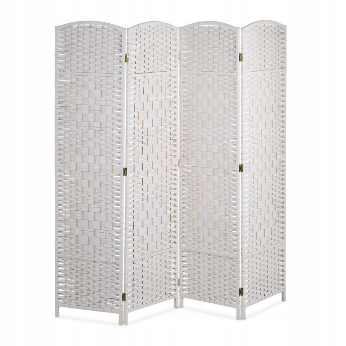 Белая тканая ширма, состоящая из четырех частей, — это не только практичная ширма для конфиденциальности, но и привлекательный элемент дизайна интерьера. Благодаря натуральным материалам и нежным цветам он впишется в любой стиль оформления.