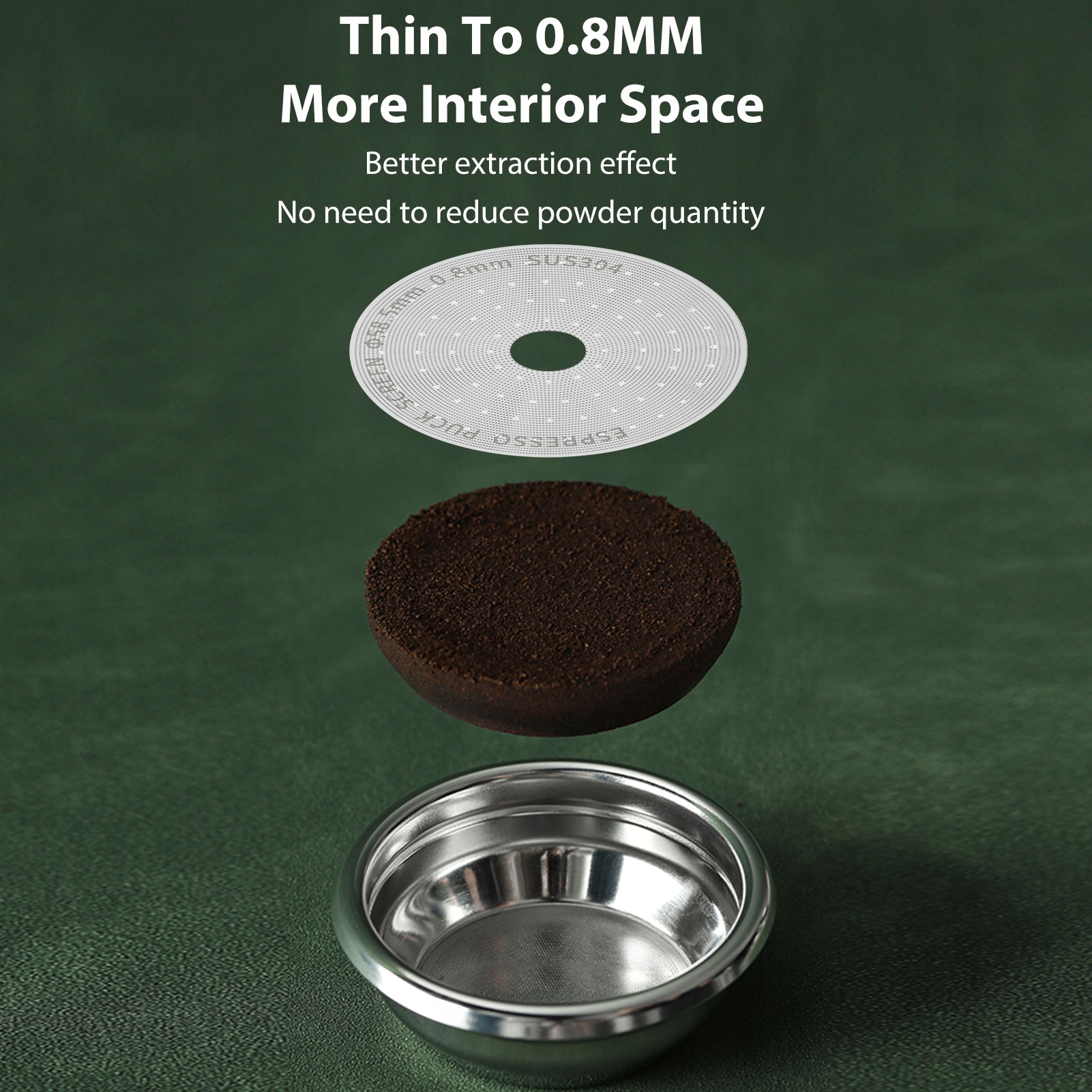 Спецификация: h2> - Двойная линейная фильтрация с 11848 сеткой, точность фильтрации 0,18 мм, даже обеспечивает экстракцию и улучшение однородности. Отличное мастерство толщиной 0,8 мм, более тонкое, чем обычные фильтры для кофейного порошка, сохраняет чистоту инфузии. Эффективно отделяет порошок кофе от пивоваренной головки, легко вымыть и потенциально дольше срок службы.