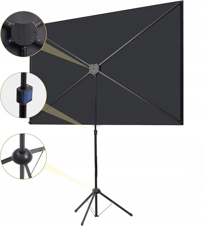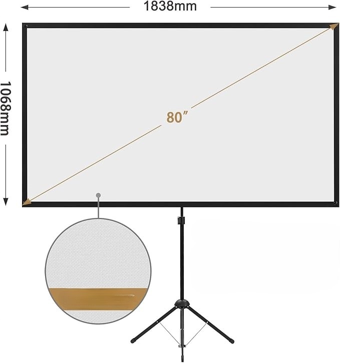 ➡ Твердый штатив - Стабильность в любой ситуации : прочная стойка с четырьмя алюминиевыми трубками и пружинным натяжением удерживает экран в идеальном положении, даже при использовании снаружи. Дизайн : весом всего 8,5 фунтов, экран легкий и прост в транспортировке. Вы можете взять его в сад, гостиную или на деловую встречу.