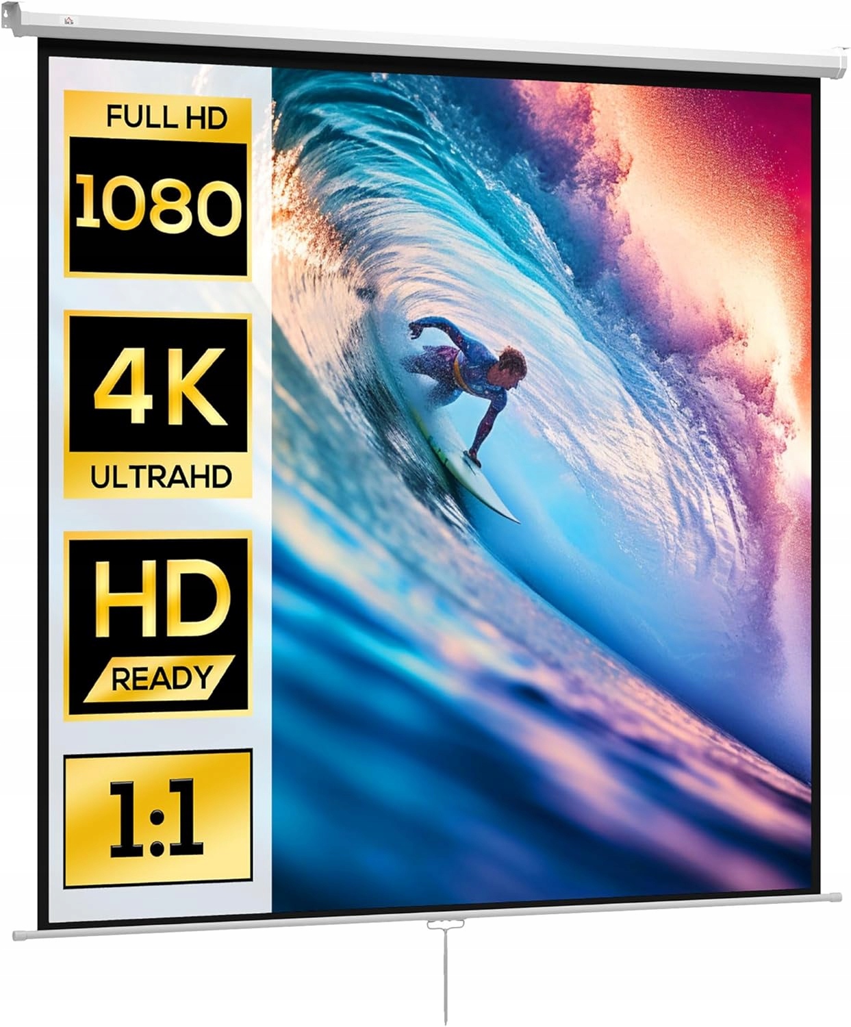 Экран проектора HOMCOM, 120 дюймов, формат 1: 1, экраны с свернутым проекцией