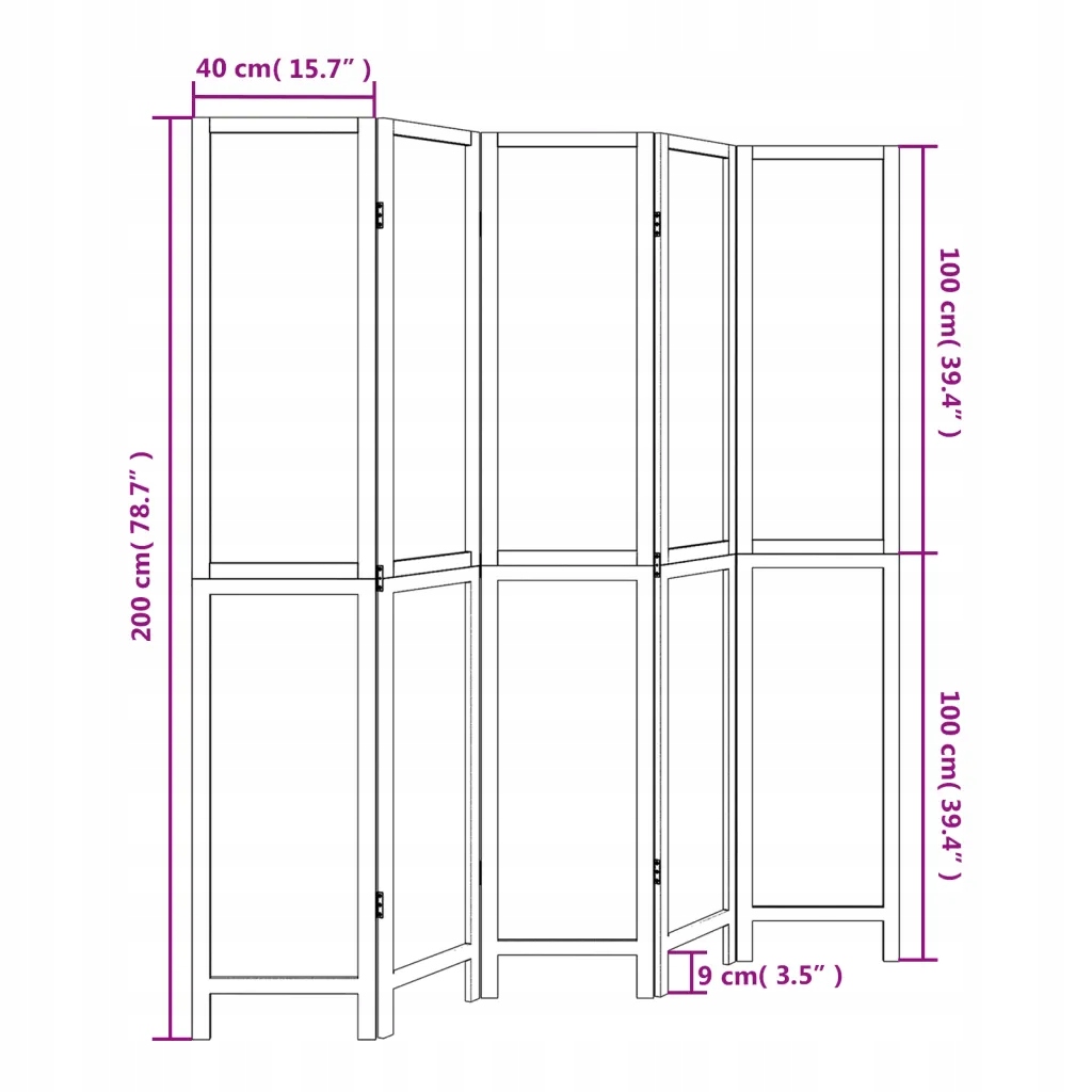 - Размеры каждой панели/крыла: 40 x 200 см (ширина x высота)