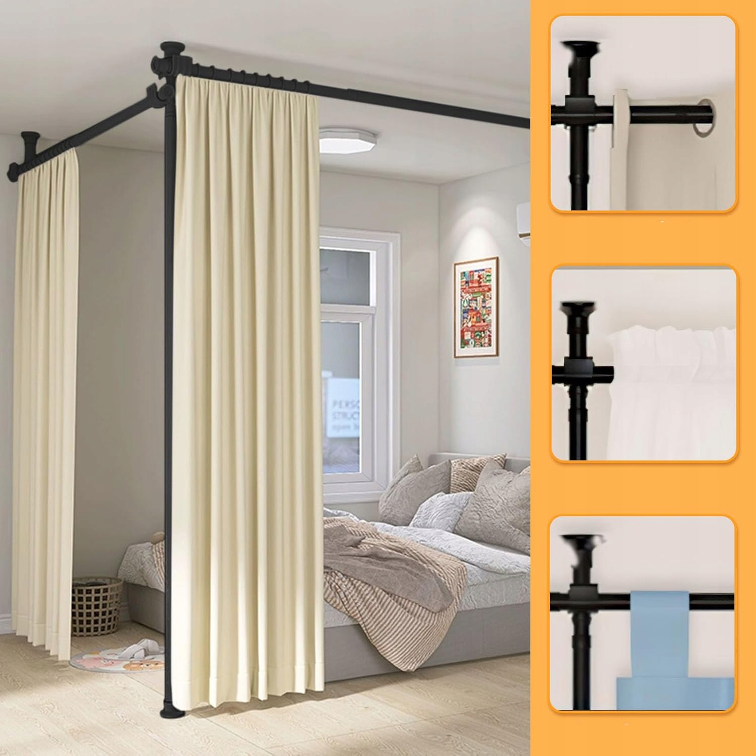 Дизайн этого экрана был разработан для гибкости и практичности . Благодаря регулируемой стержне с высотой от 122 до 305 см и длиной от 70 до 177 см, он может быть адаптирован к различным размерам комнат, что позволяет оптимально использовать пространство. Установка экрана выполняется быстро, без необходимости использовать инструменты, что делает его чрезвычайно дружелюбным решением для людей, которые хотят быстро и легко изменить расположение интерьера. Быстрое превращение гостиной или спальни в интимное пространство теперь у вас кончится.