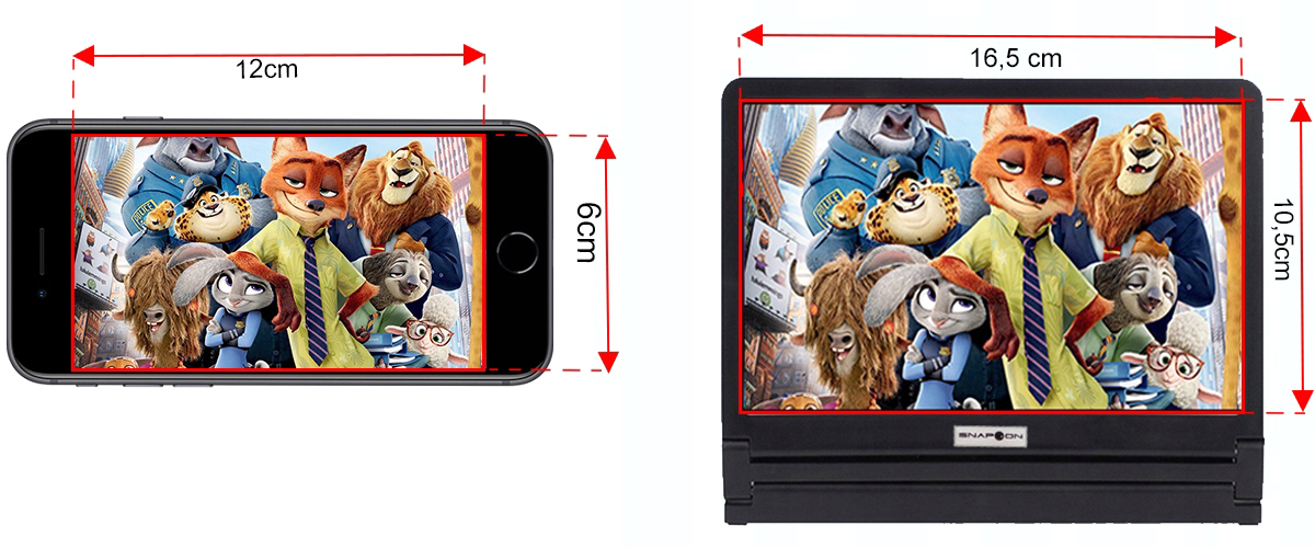 *В более крупных смартфонах изображение через увеличительный экран будет отображаться по всей ширине, но края изображения не поместятся, не волнуйтесь, просмотру фильмов или мультфильмов это не помешает.