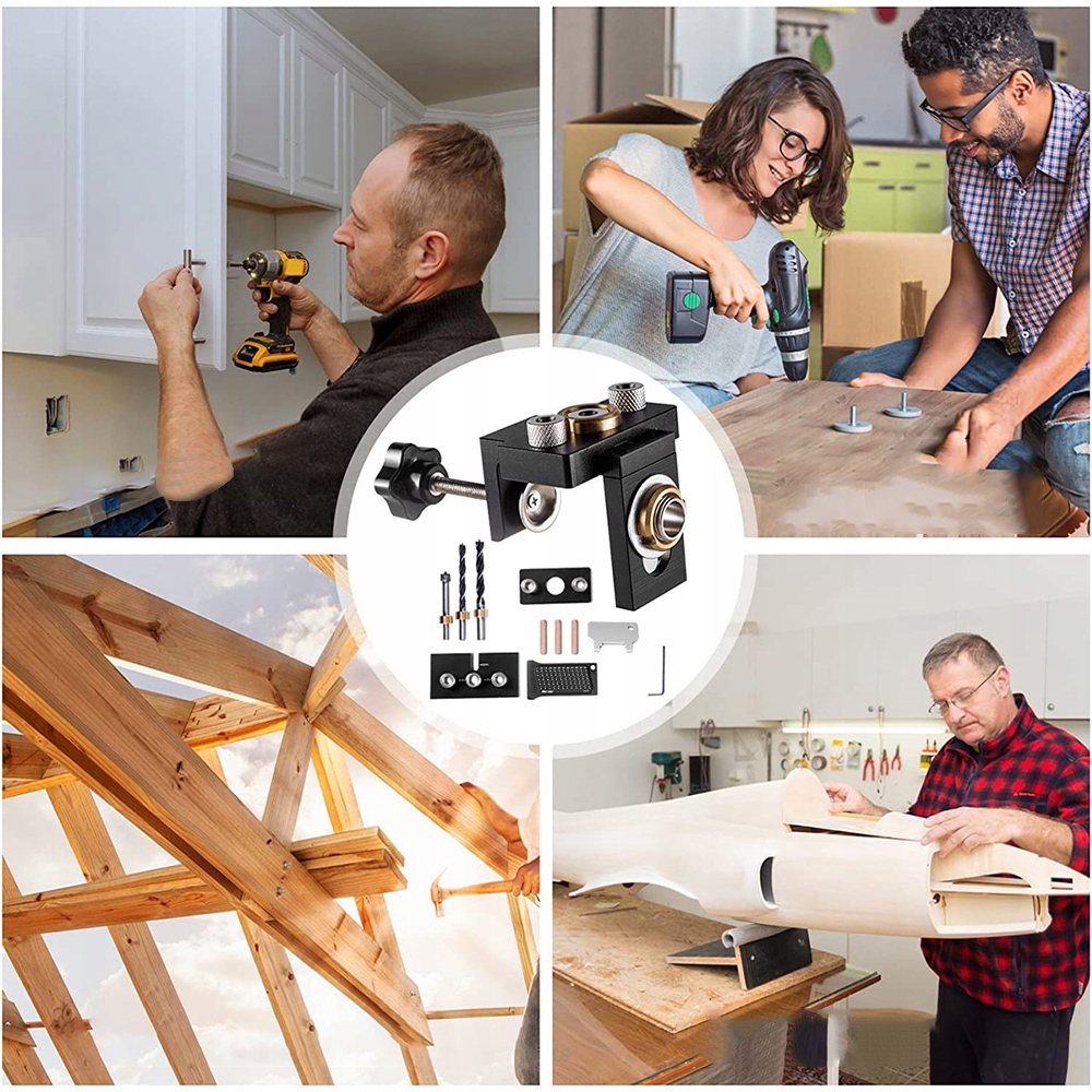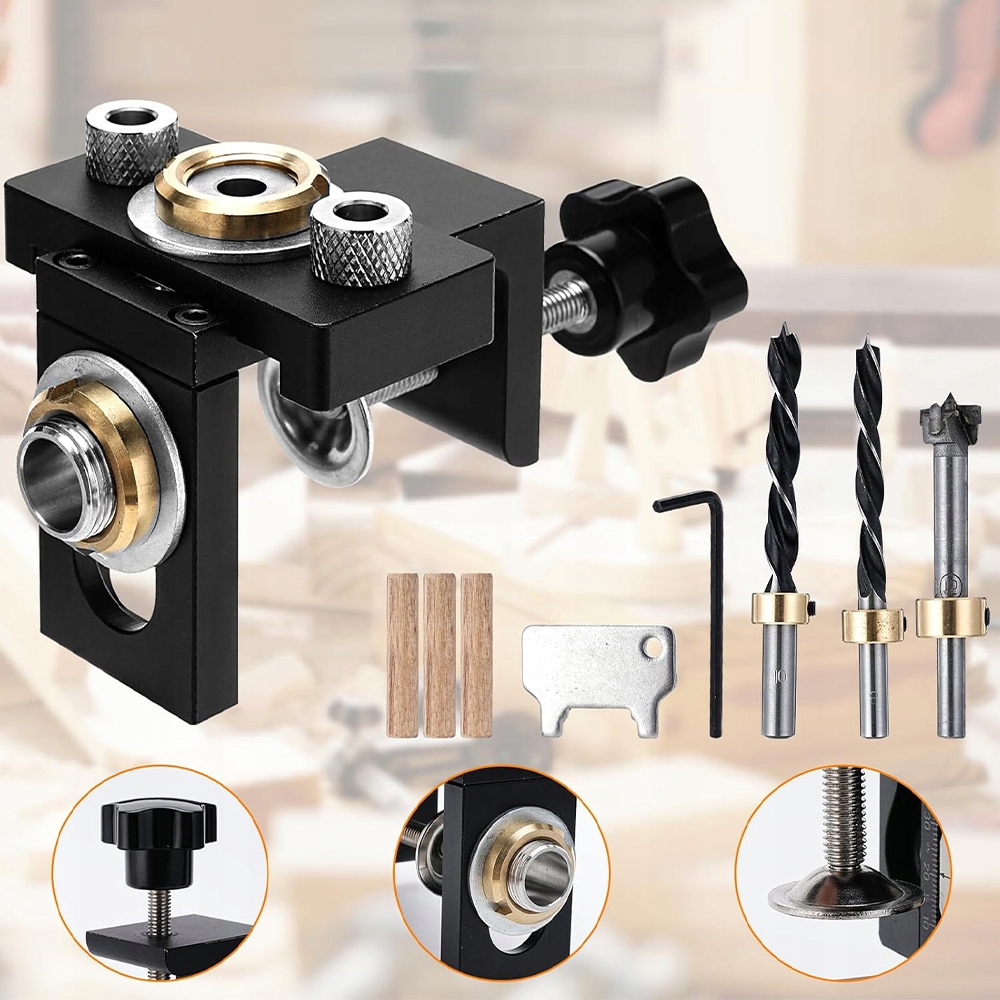 - Втулки из закаленной стали трех разных размеров (8 мм/10 мм/15 мм) обеспечивают быстрое и легкое точное сверление.