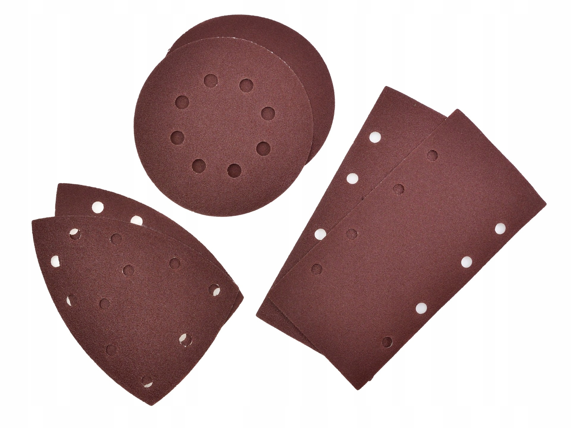 Прямоугольная наждачная бумага крепится с помощью зажимов, а круглая и треугольная наждачная бумага крепится с помощью липучки.