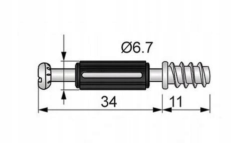 Комплект состоит из штифта, вкручиваемого с помощью отвертки, и эксцентрика, используемого для затяжки соединения.