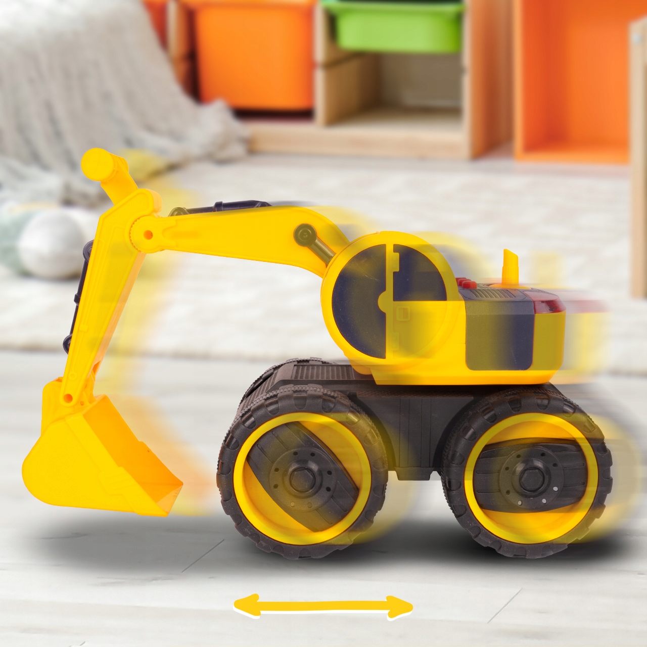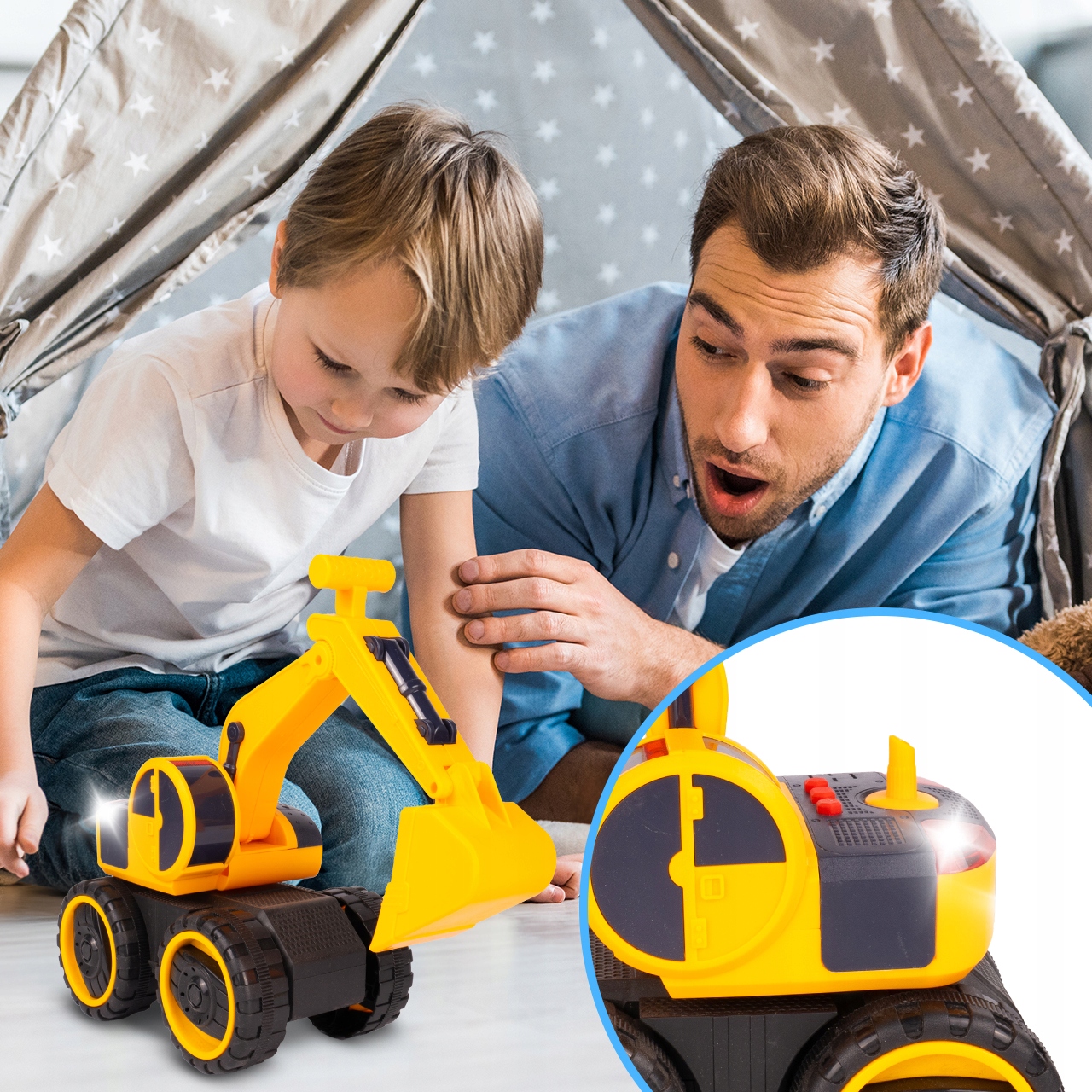 Игруппа имеет звуковые кнопки 3 b>, которые издают звуки двигателя, работы экскаватора и рога. Благодаря этому ребенок может чувствовать себя настоящим оператором машины! Встроенные - в передние светодиодные фонари запускаются с кнопками - веселье становится более реалистичным, особенно вечером или в более темных комнатах.