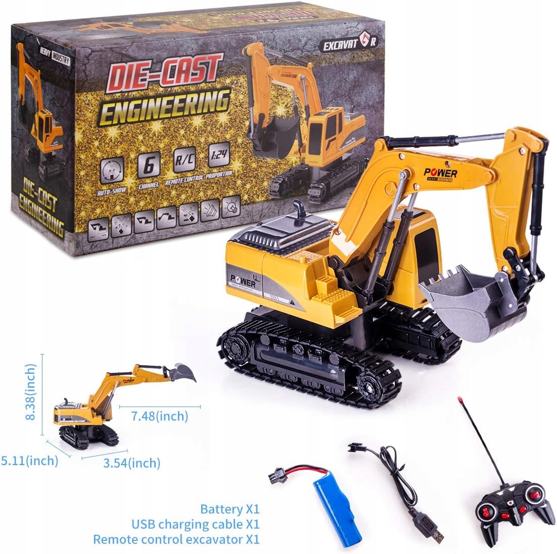 ЭКСКАВАТОР, СТРОИТЕЛЬНАЯ МАШИНА С ДИСТАНЦИОННЫМ УПРАВЛЕНИЕМ, ИДЕАЛЬНО ДЛЯ РОЖДЕСТВЕНСКОГО ПОДАРКА