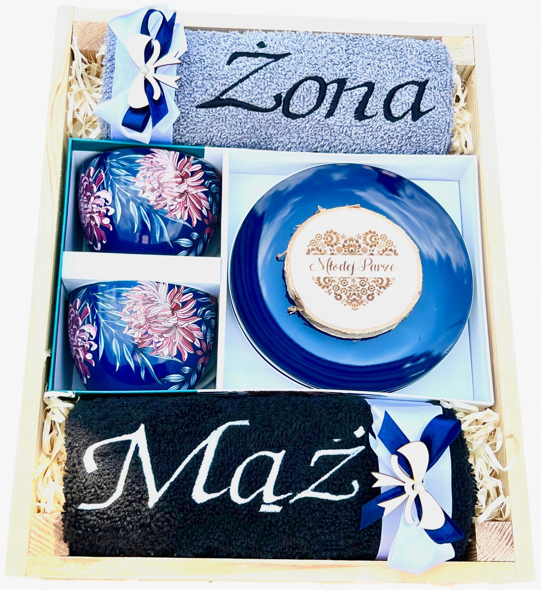 EKSKLUZYWNY Prezent Ślubny Ręczniki Filiżanki