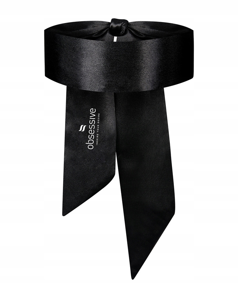Атласный пояс служит маской для глаз или тонкими, тонкими наручниками.