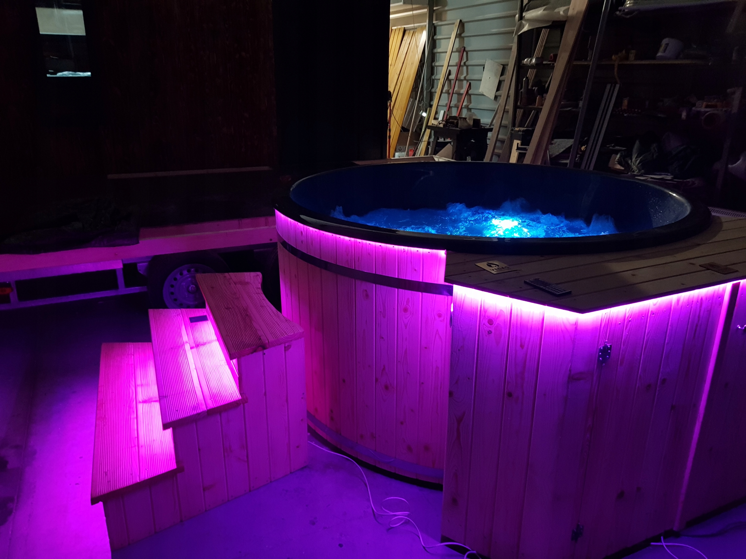 • Полное управление по телефону – освещение, массаж, динамики (возможность настроить почасовое смешивание, чтобы вода не замерзала зимой)