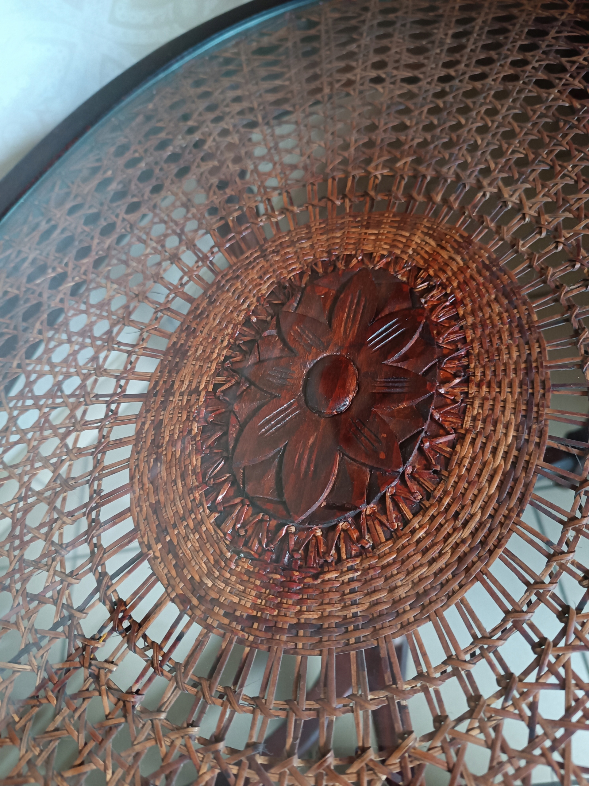 Эксклюзивный овальный журнальный столик с ротангом и стеклом