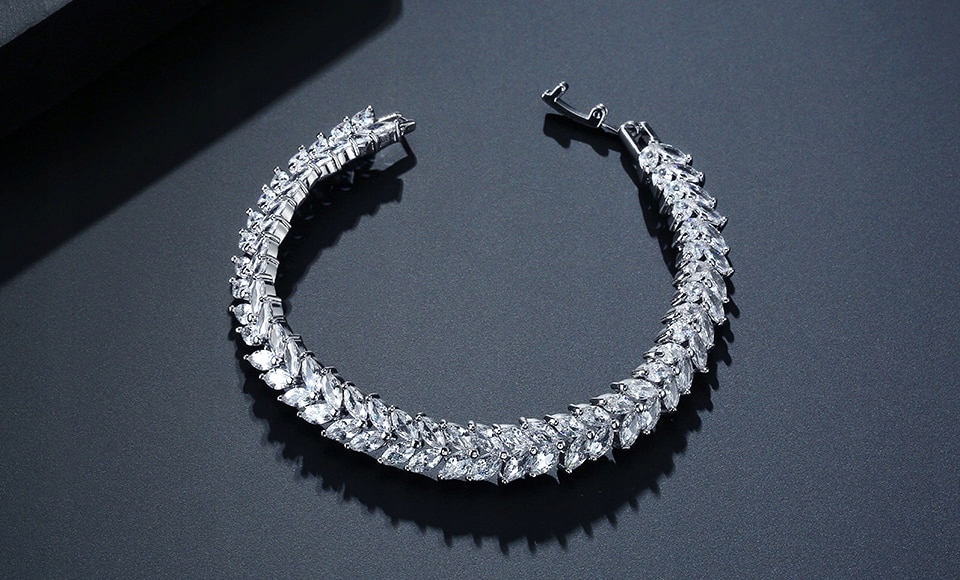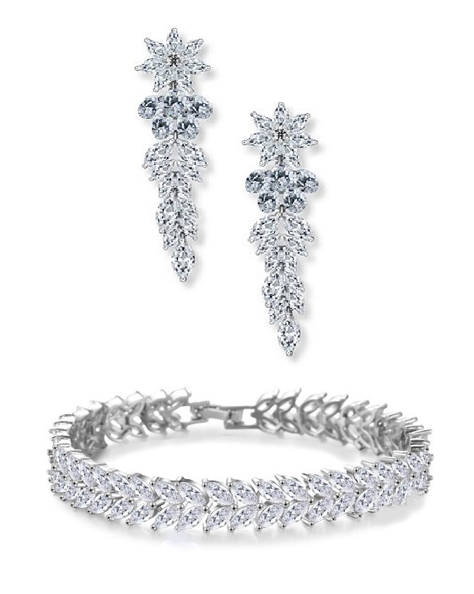 Камни, используемые для создания украшений, – бесцветные цирконы, которые являются лучшими заменитель бриллиантов. Австрийские циркониевые цирконы характеризуются высокой твердостью и красивым блеском. Уникальная огранка, чистота и ручная закрепка камней гарантируют лучшее качество. Как и в случае с бриллиантами, здесь наблюдается феномен блеска в виде сверкающих отблесков. Лучи света, падающие на поверхность камня, преломляются, создавая эффект разноцветных, мерцающих отблесков. Фотографии не передают всей красоты этих украшений, только в реальной жизни вы можете увидеть их во всей красе (особенно как красиво они сверкают).