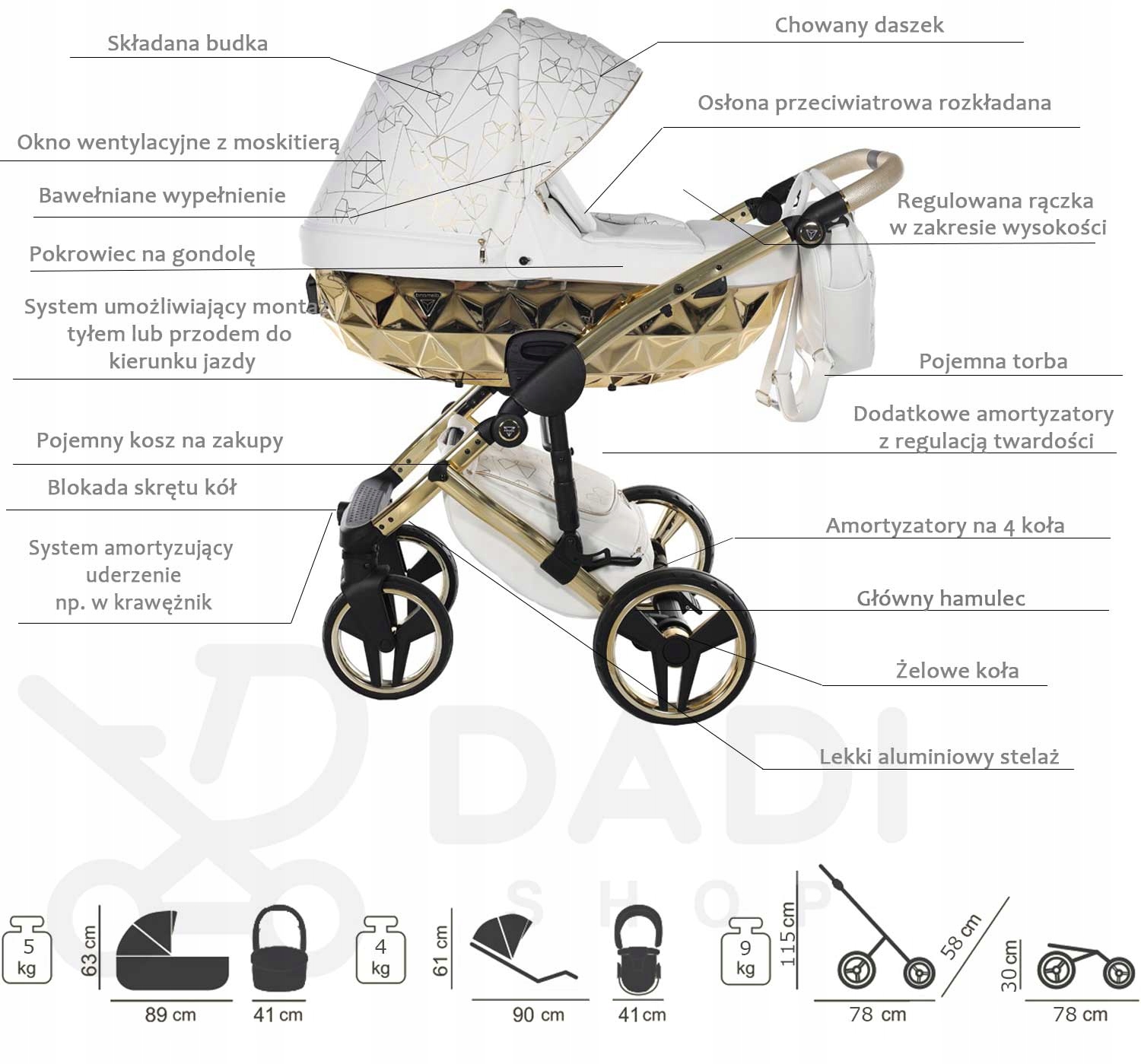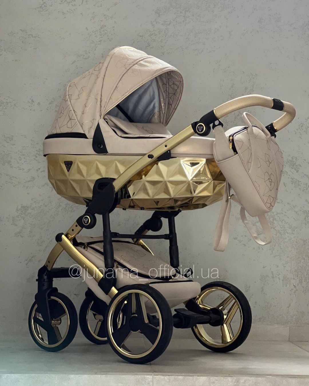 Совершенно новое предложение от JUNAMA™ HEART – многофункциональная детская коляска с удобной коляской и возможностью крепления автокресла. УНИКАЛЬНОСТЬ Коляска HEART покорит многие материнские сердца. Коляска изготовлена из экокожи и вся помещена в зеркальную золотую рамку. Вы не сможете пройти мимо этой супермодной модели коляски. Гондола коляски имеет зеркальную ромбовидную текстуру, что является визитной карточкой JUNAMA™.