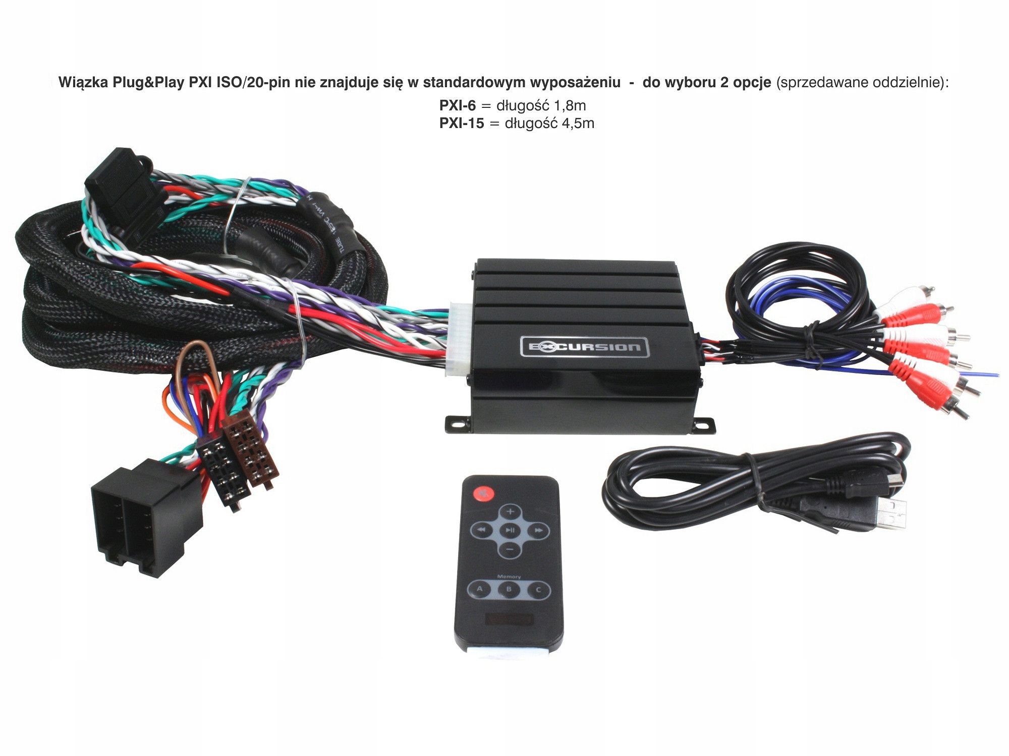 Установка процессора Excursion PXA-P6 со встроенным усилителем мощности невозможна. очень быстро, просто и удобно благодаря доступным специальным жгутам ISO DIN Plug & Play. Пакеты продаются отдельно, поскольку они доступны в двух вариантах длины в зависимости от ваших потребностей: Excursion PXI-6 (длина 1,8 м) или PXI-15 (длина 4,5 м). Может быть на некоторых моделях автомобилей