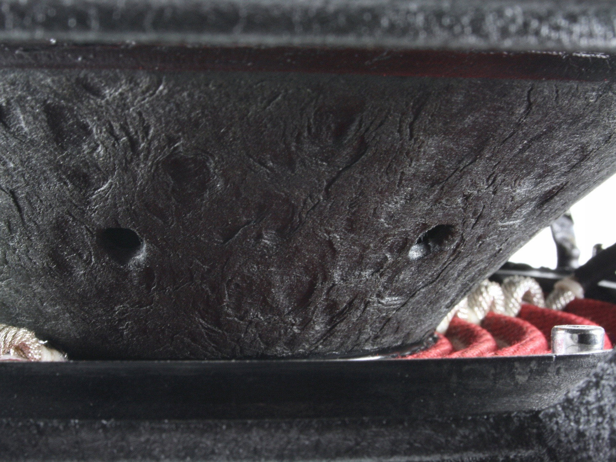 - Верхняя подвеска HDR (70:5 High Density & High Roll) представляет собой очень прочную конструкцию с высокой гибкостью, большим прогибом и высокими демпфирующими свойствами. Этот тип подвески находится между двумя различными концепциями, используемыми в громкоговорителях серий XXX и MXT, взяв лучшее от обеих. Для обеспечения высокой механической прочности сгиб верхнего подвеса был проклеен очень прочным клеем и дополнительно пришит к конусу мембраны и прижат к корзине привинченным алюминиевым кольцом.