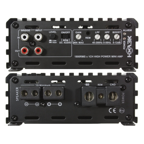 1-канальный автомобильный усилитель мощностью 1x600/1200/1800 Вт, стабильный до 1 Ом, цифровой (D), мостовой (Bridge-Link), входы сигнала Hi/Lo, автоматическое включение/выключение, небольшие габариты