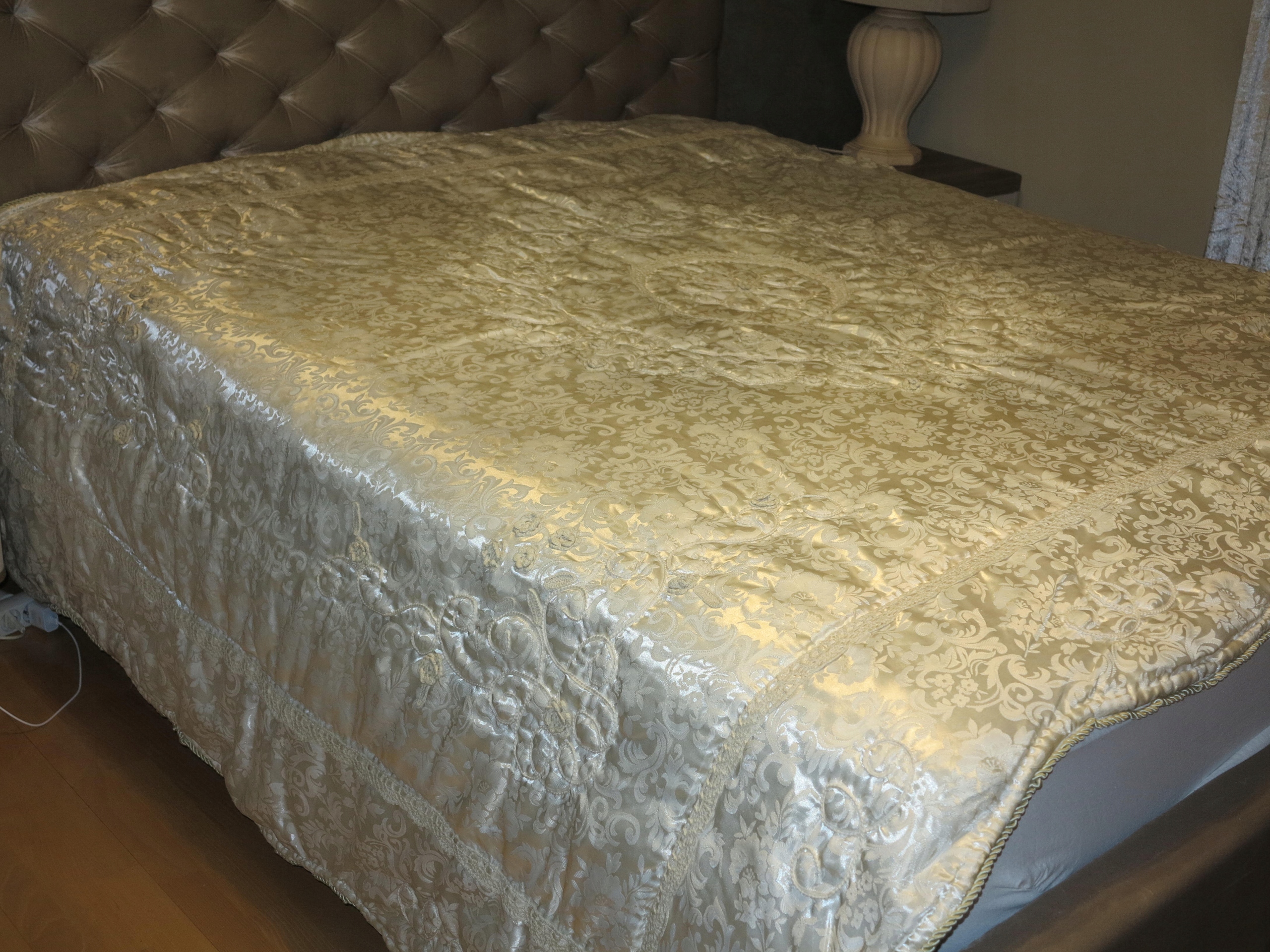 Предмет аукциона - роскошное немецкое покрывало для большой кровати, с богатой вышивкой крючком и лентами. Покрывало б/у, в очень хорошем состоянии и качестве.