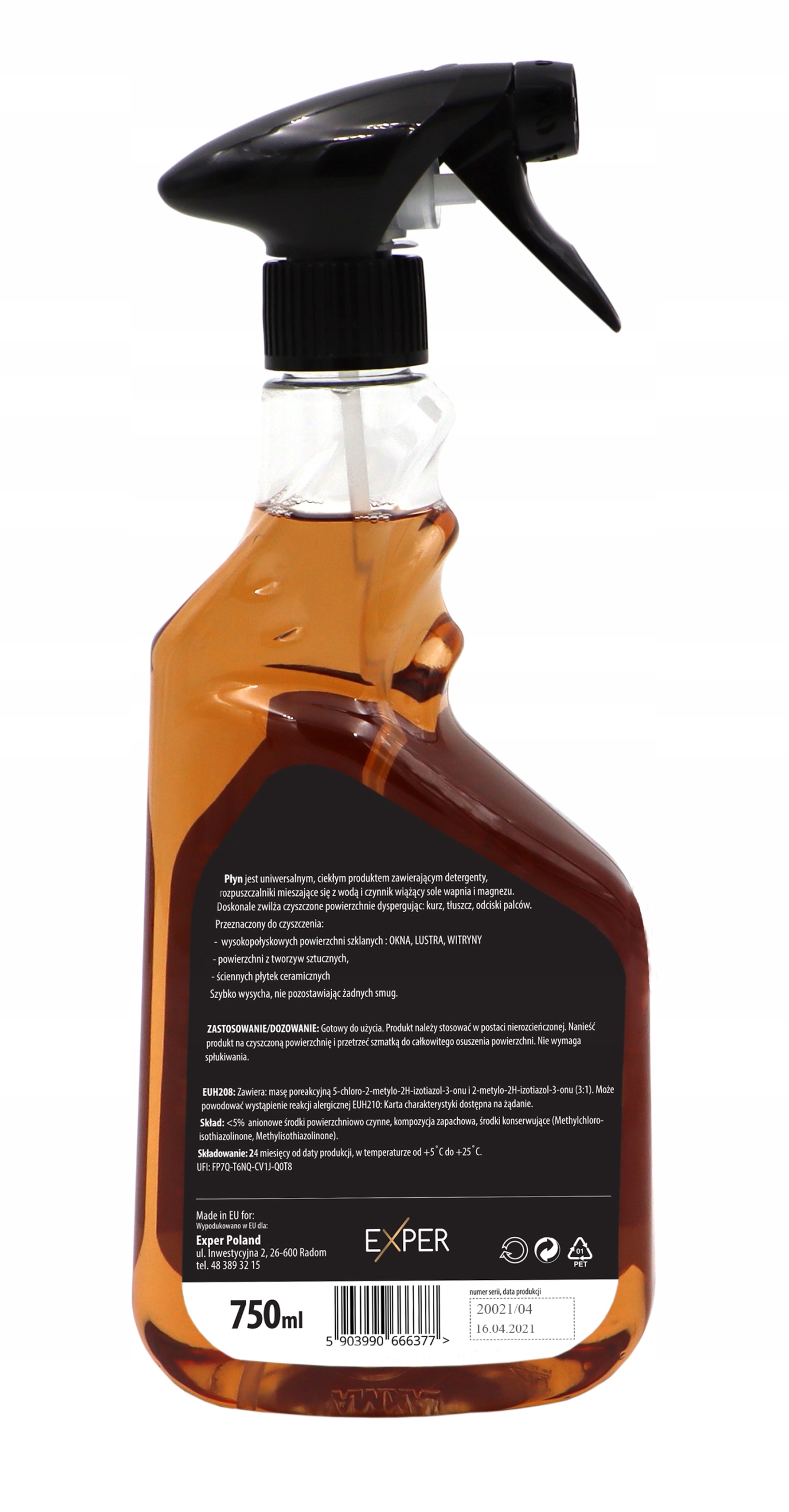 Жидкость представляет собой универсальный жидкий продукт, содержащий растворители, смешивая с водой, и фактор, связывающий соли кальция и магния. Отзыв: пыль, жир, отпечатки пальцев.