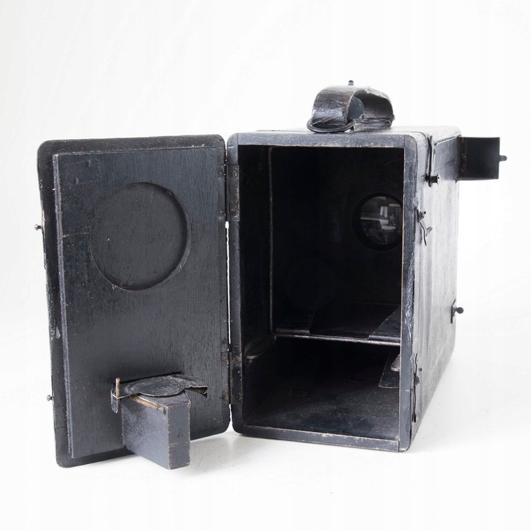 Сегодня я выпускаю итальянский аппарат с большим форматом, очень редко встречающийся в нашей стране детективного типа - Экспресс -новичок Мурера. Поэтому можно было подготовить фильм ранее, все еще в темной комнате и сделать несколько фотографий без надоедливого, быстрого вызова. Он ограничивал фотографы только весом оборудования и количество пластин, взятых в металлических или деревянных корпусах. В эти годы, так называемый Детективные камеры. Это имя было вдохновлено модой для детективных романов, в которых персонажи часто делали снимки незаметно. Большинство камер в то время было большим и трудно пропустить, и детективные камеры были меньше, настолько, что они могли быть спрятаны в сумке и фактически сфотографироваться из скрытия. Сегодня этот тип фотографии чаще называется «уличной» фотографией, а также о фотографировании людей на повседневных занятиях, на улицах и незаметно. В дополнение к размеру характерной особенностью детективного аппарата была возможность сделать много фотографий из -за того, что внутри было несколько бляшек, загруженных фоточувствительностью, которые можно было изменить прямо. Тарелка расположена больше всего спереди после того, как сфотографировала камеру, а следующий позади нее вышла вперед. Мода для этих камер длилась между 20 и 30 лет, пока не появились фильмы о катушке и популярные камеры Kodak Browne, которые также были небольшими и позволили фотографировать