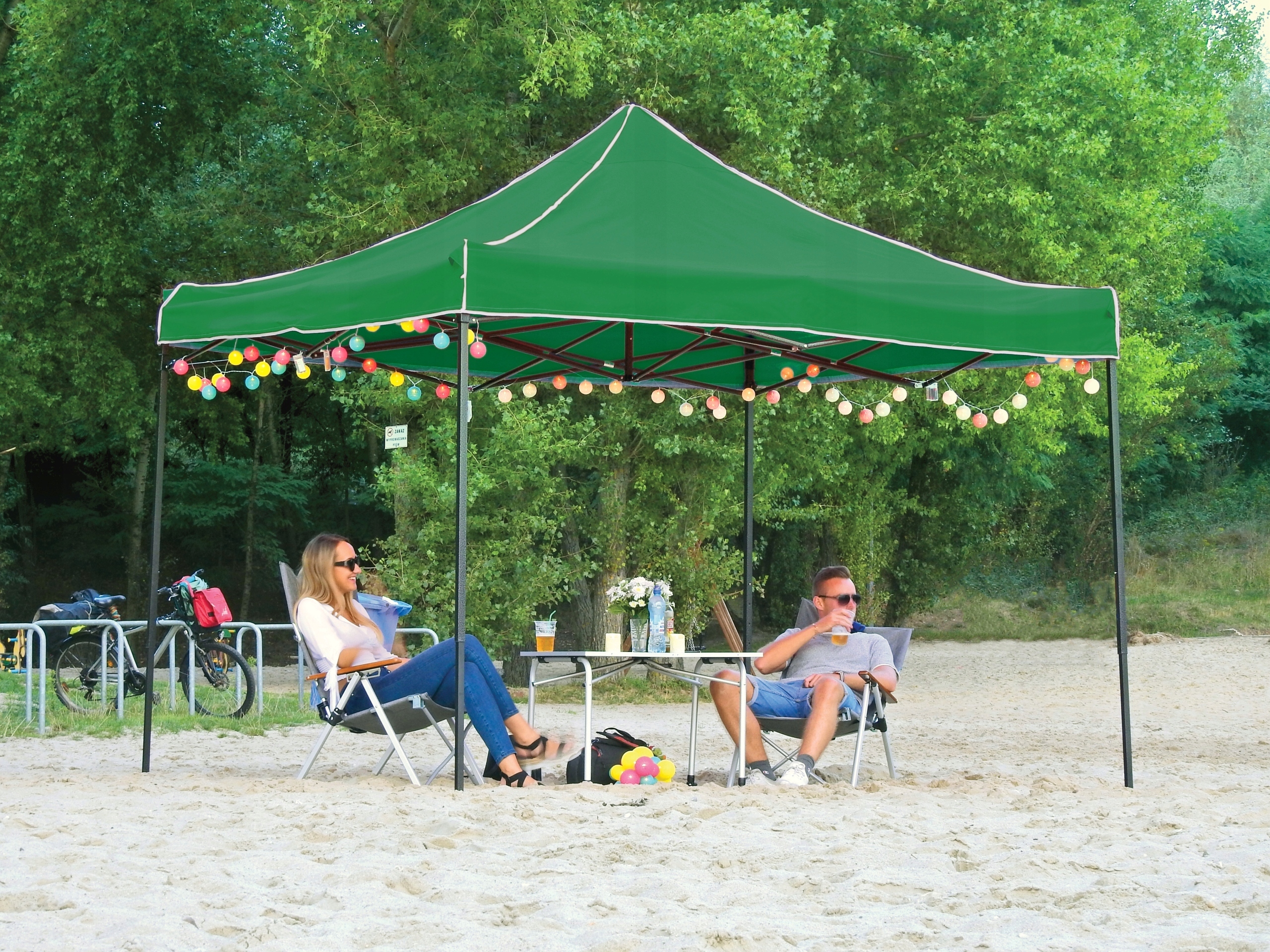 Декоративный брезент с белой полосой придает складной павильон – вневременная элегантность, визуально подчеркивающая высокое качество павильона.