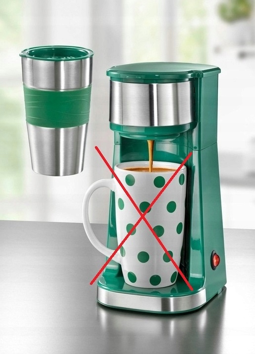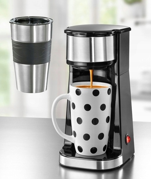 Машина для быстрого приготовления ароматного кофе. В комплект входит термокружка с практичным крышка на вынос Кофе можно заваривать прямо в термокружке. Со постоянным фильтром для молотого кофе. Ароматный кофе, свежеприготовленный чашка за чашкой. Автоматическое отключение.