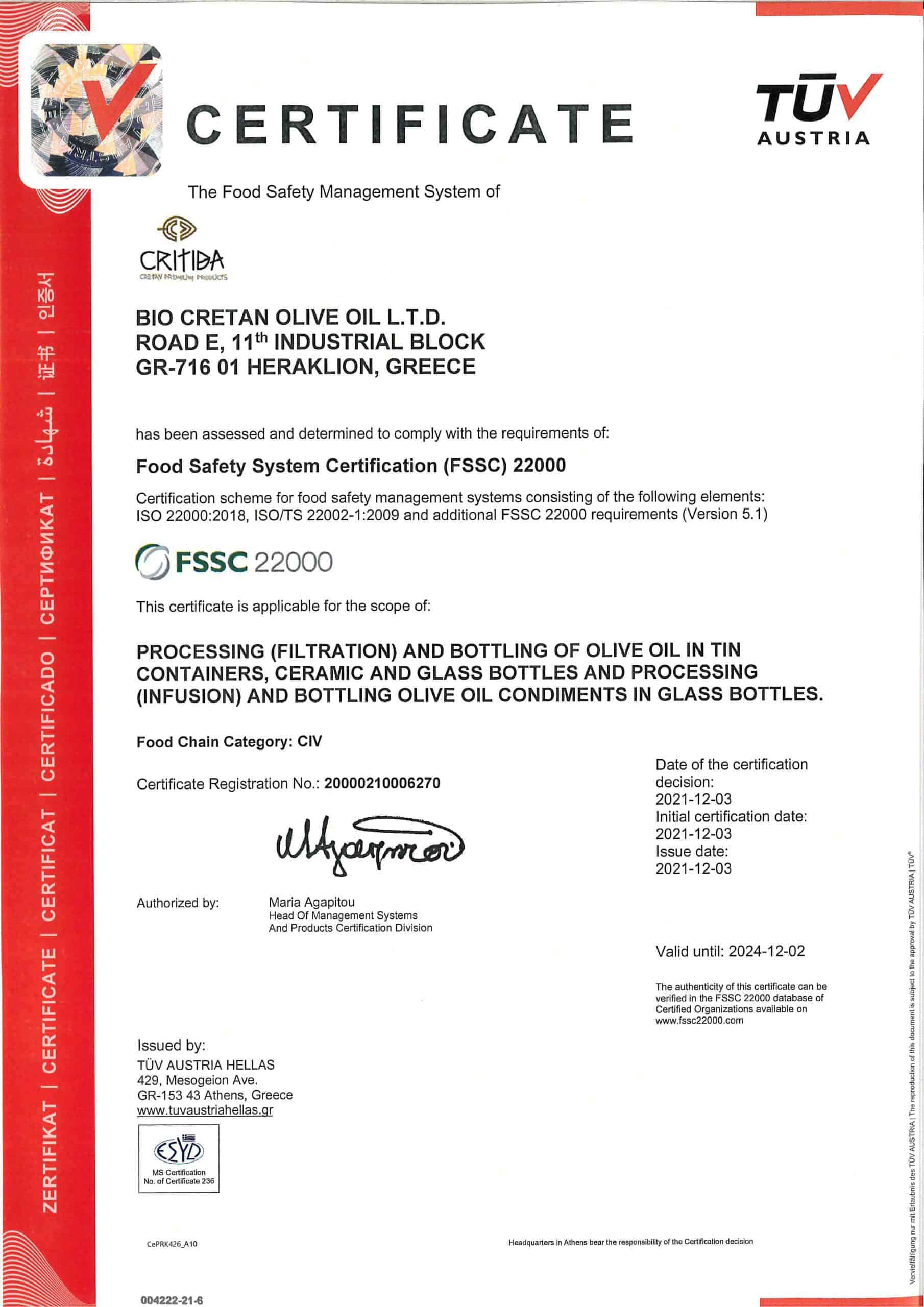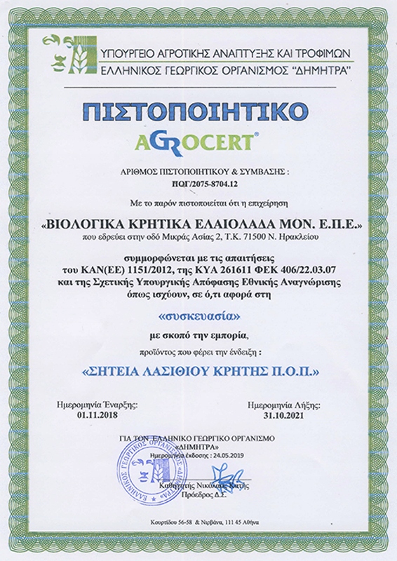 ⚡ Сертификат CHNP (PDO), подтверждающий уникальное происхождение и качество оливкового масла из региона Мессара.