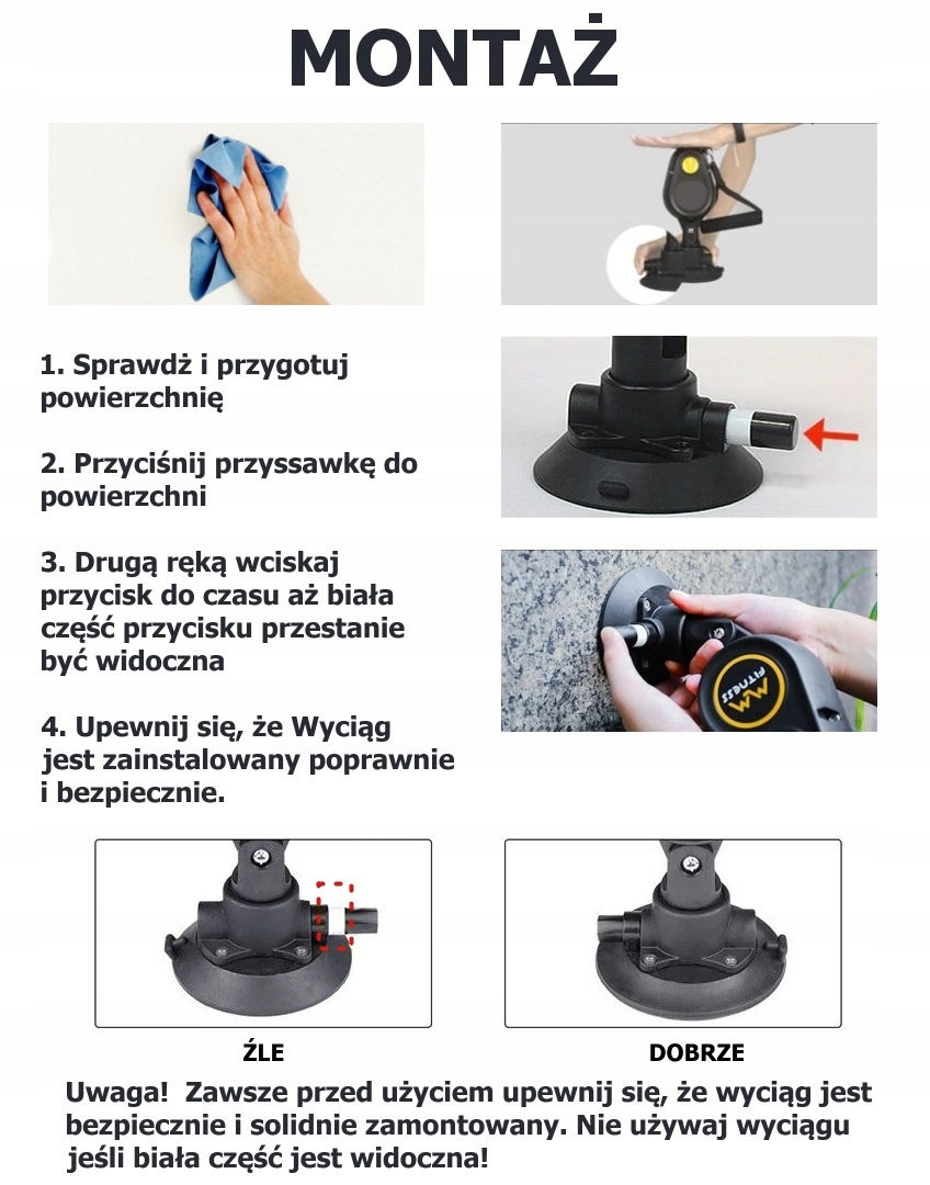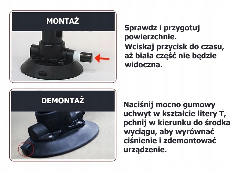 5. Если подъем не является стабильным или белая часть кнопки все еще видна, это означает, что подъемник неправильно установлен. Проверьте, подходит ли поверхность для сборки.