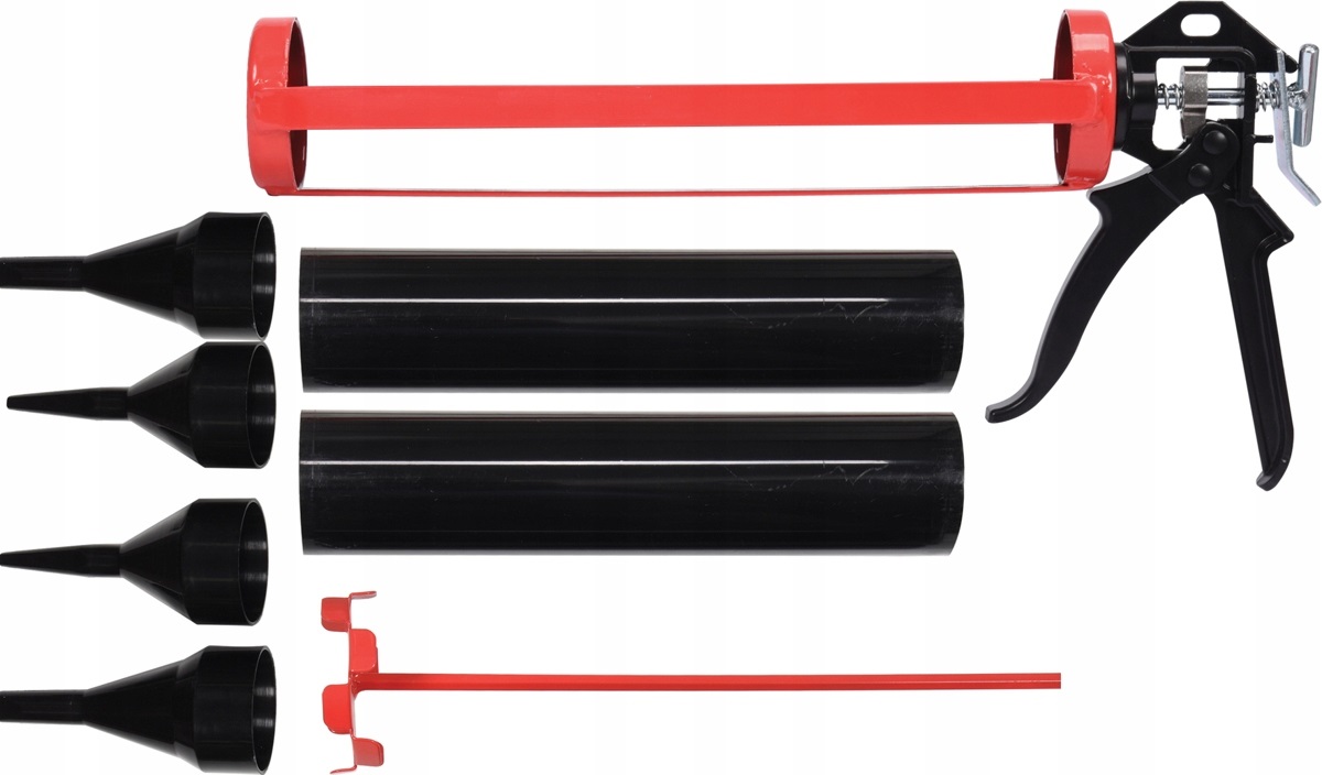 Скелет выдавливатель для шпаклевок, штукатурных растворов и швов, наносимых неплотно. Легкая конструкция с хорошо подогнанным спусковым крючком предотвращает утечку материалов. Автоматическая блокировка поршня предотвращает случайное применение. Имеет очень мощный прижимной механизм. Резиновый поршень усилен металлическими пластинами. В комплект входит миксер для приготовления массы и две насадки для нанесения.