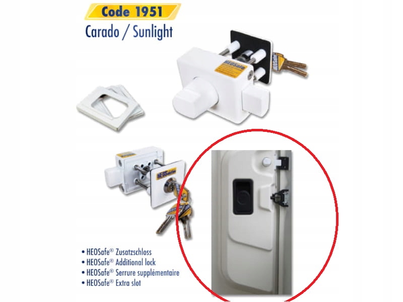 Оригинальная вставка/адаптер для защиты Heosafe. Адаптер предназначен для автодомов с кузовами Glücksmobil, Etrusco, Carado и Sunlight, построенных на базе Fiat Ducato 2006-2021 годов. Адаптер крепится на дверь площадки для кемпинга, чтобы скрыть предохранительный замок Heosafe.