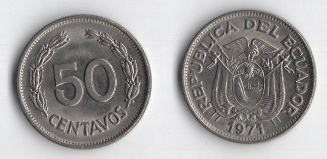 ЭКВАДОР 50 СЕНТАВО 1971 ГОДА