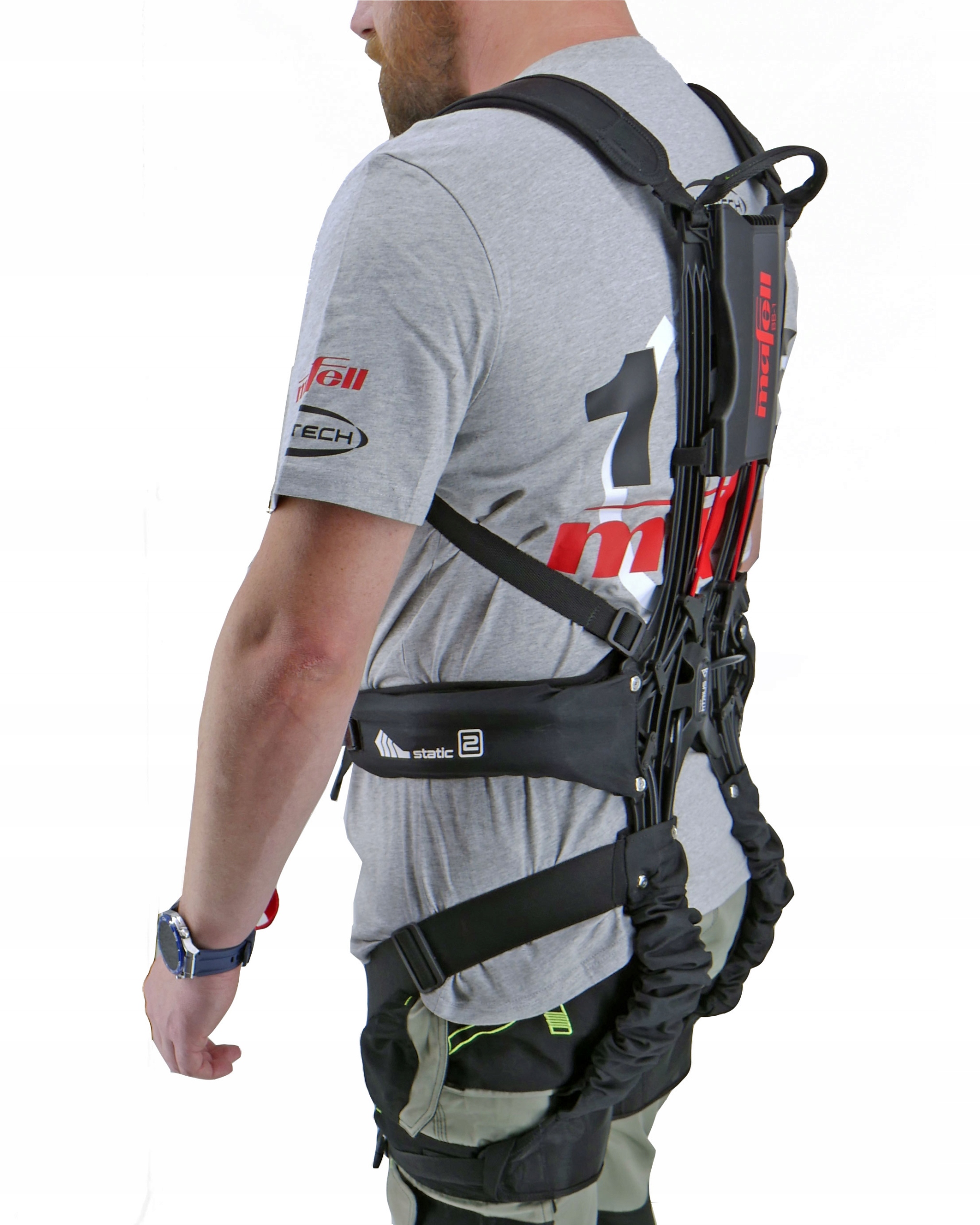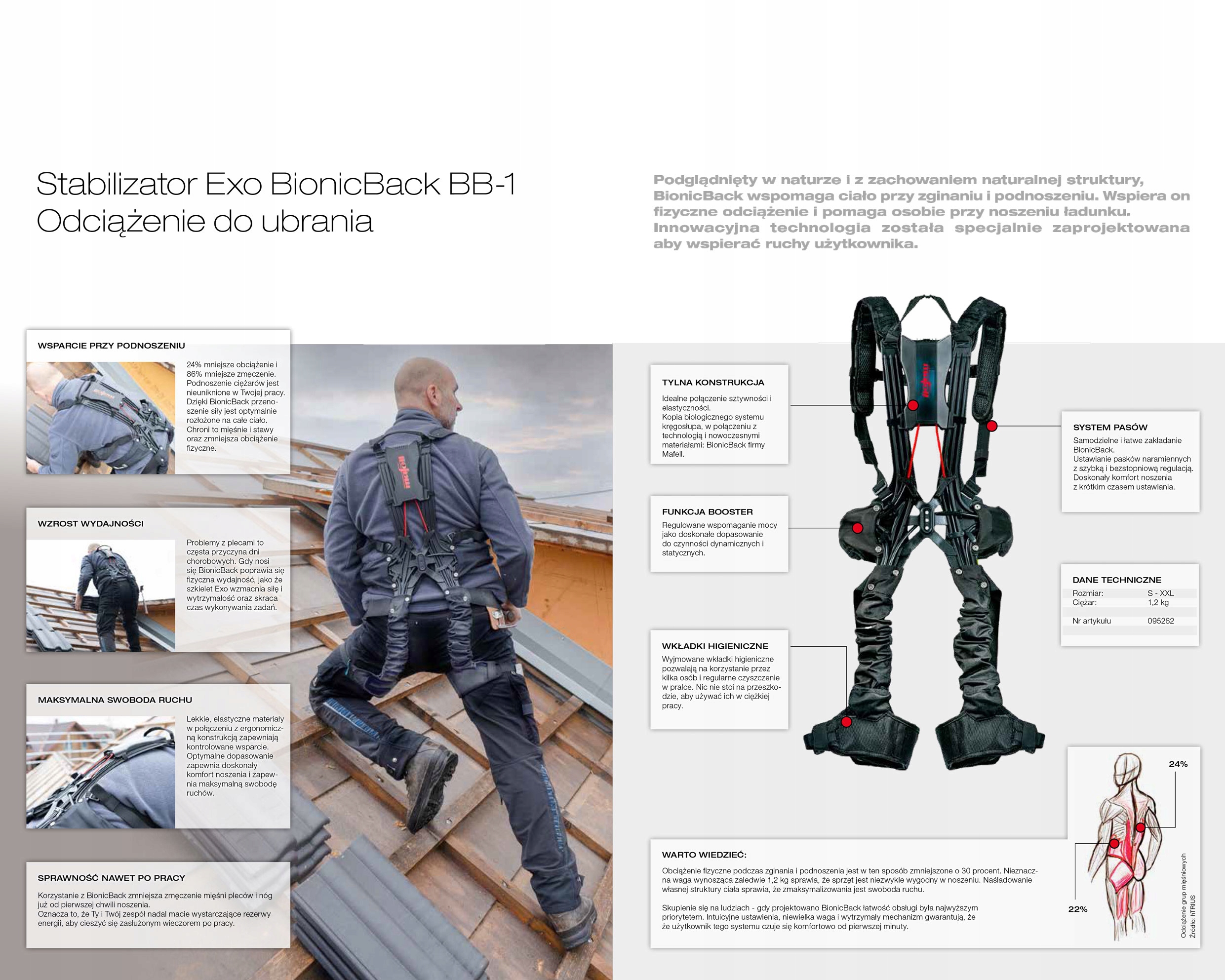 - Exo-стабилизатор Mafell Bionicback снижает усталость мышц спины и ног.
