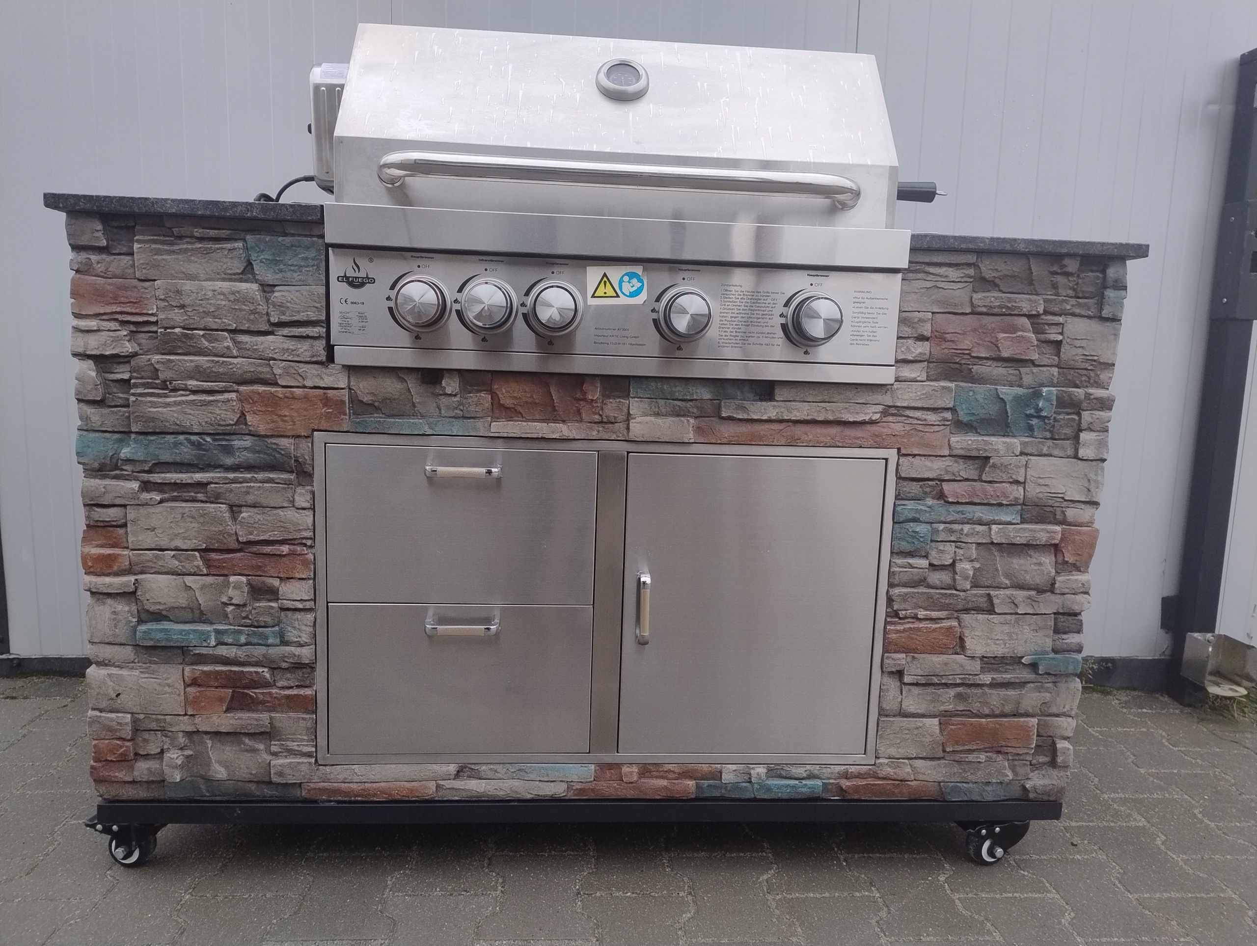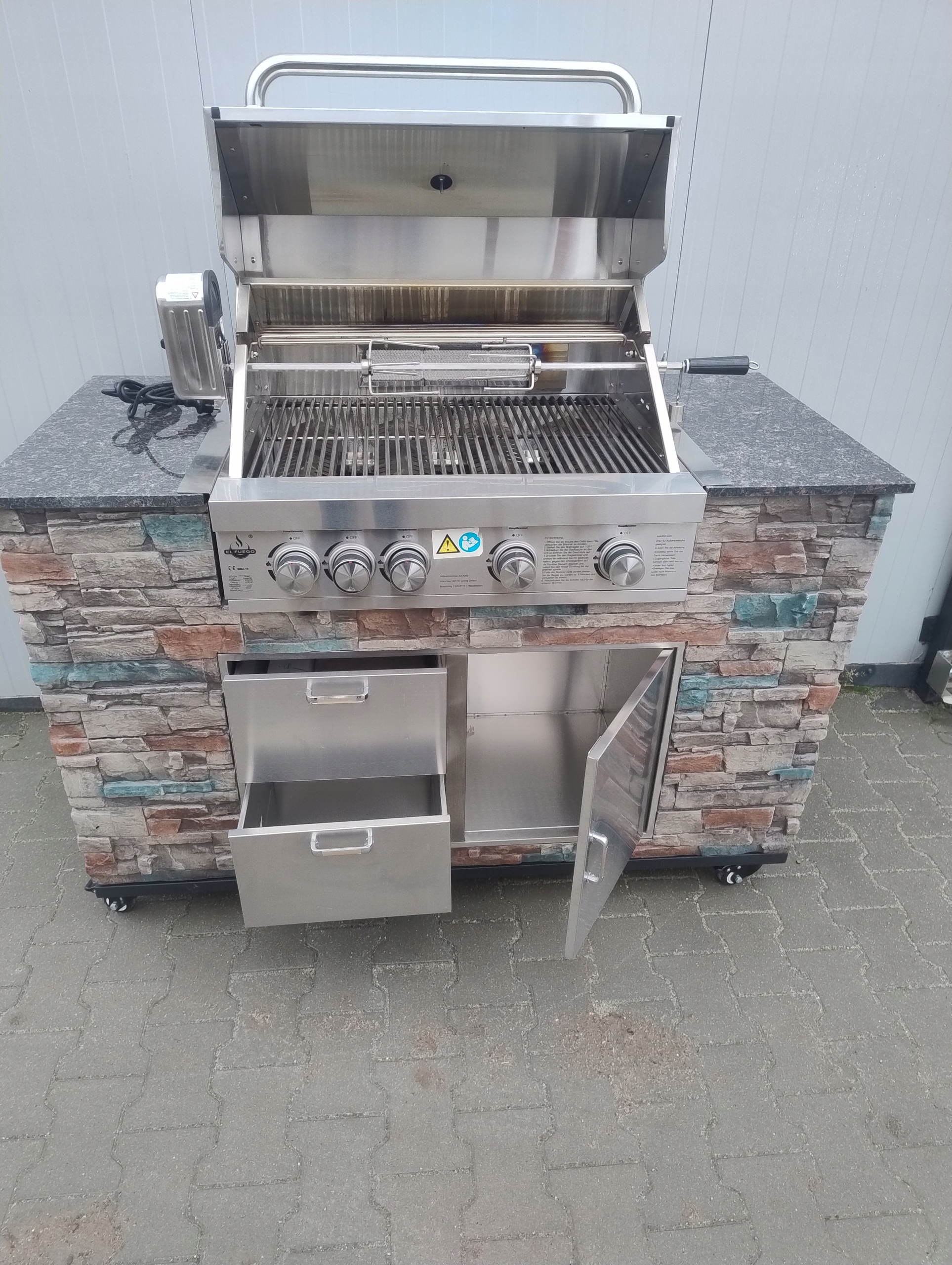 газовый грильТовары, используемые в очень хорошем состоянии, полностью функционально и полны. Условие, видимое на картинках, имеет слегка поврежденный уголок каменной столешницы и минимальные осколки на корпусе