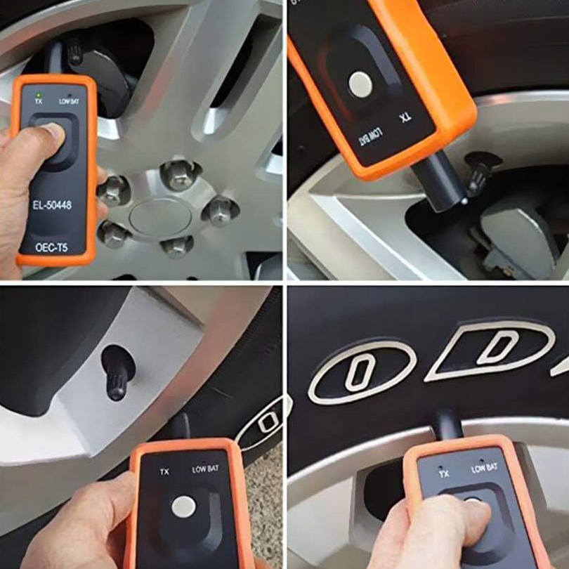 ✅ Легко в использовании: el50448 может помочь вам сбросить все шины, сделав всего 3 шага. Убедитесь, что автомобиль находится в режиме обучения TPMS и следуйте процедуре обслуживания. Держите инструмент у боковой стенки шины, рядом с валом клапана. Нажмите кнопку обучения, удерживая инструмент у боковой стенки шины.