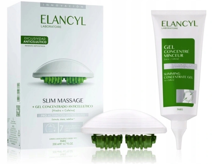Elancyl Slim Massage + Concentrated Gel, 200 мл - идеальная комбинация для сглаживания и укрепления вашей кожи. Клинически подтвержденная эффективность антипродуцита после 14 дней использования.
