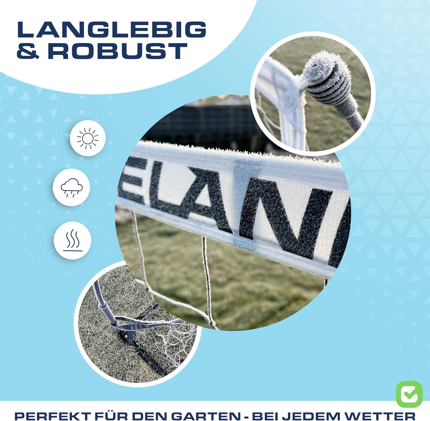 С этими футбольными воротами ни одна игра не упадет в воду. Материал наших детских футбольных ворот, устойчивый к атмосферным воздействиям и ржавчине, обеспечивает длительное использование в любых погодных условиях и прекрасно дополняется. на 8 контактов для стабильности и безопасности. Это означает, что ваши ворота для садового футбола всегда остаются на месте, и вы можете продолжать игру, не рискуя ускользнуть от ворот.