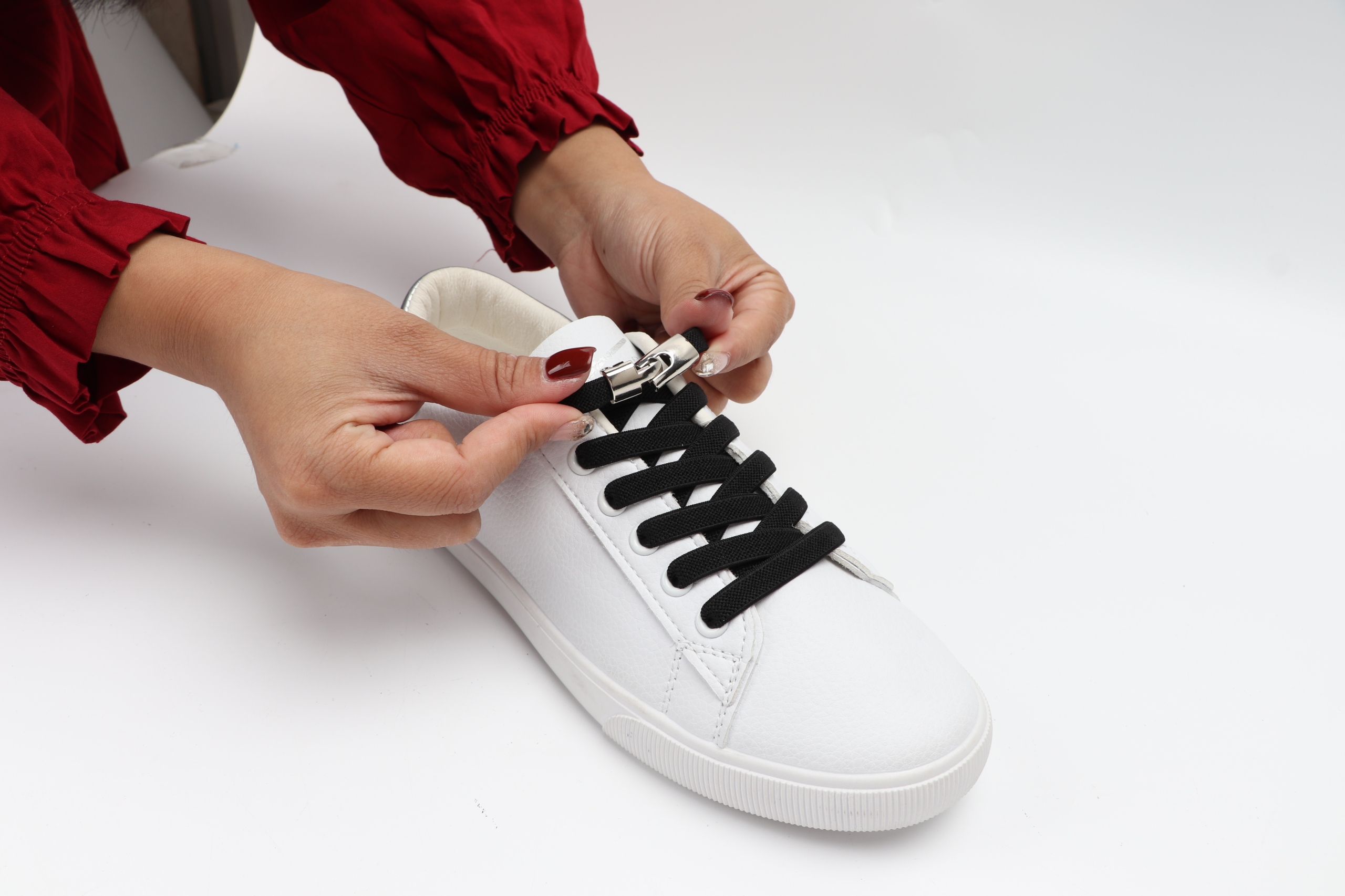 Эластичные шнурки облегчают завязывание обуви. и быстро.