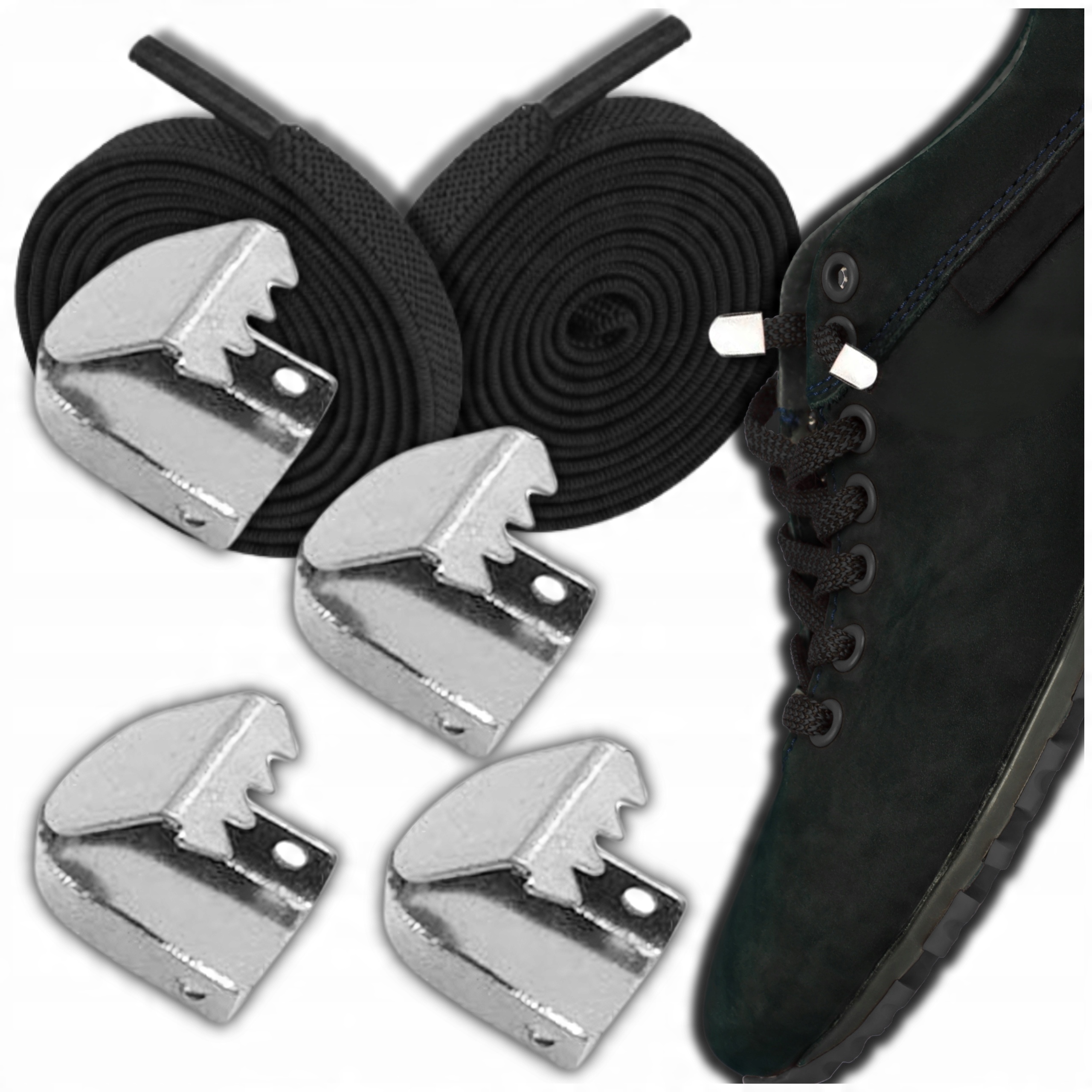 Еластичні шнурки без зав'язок, чорна плоска резинка