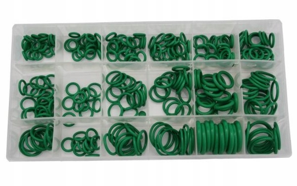 Целое упаковано в пластиковый контейнер, в котором каждый размер уплотнения имеет свое отмеченное место.