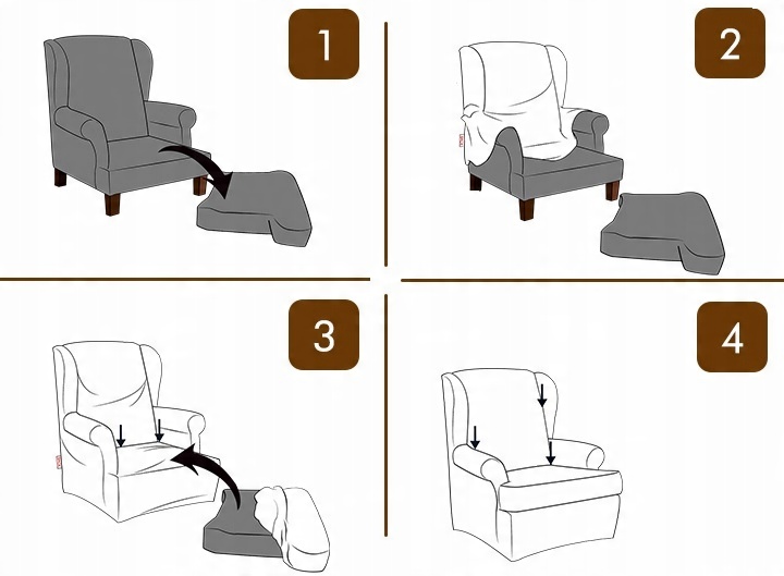 ЭЛАСТИЧНЫЙ ЧЕХОЛ ДЛЯ КРЕСЛА-КРЫЛА, КРЕСЛА-КРЫЛА С ПОДУШКОЙ