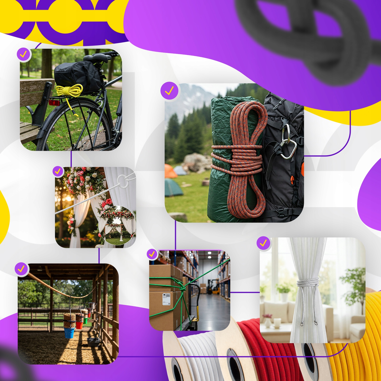 Они также используются для крепления рекламных баннеров и натяжения брезента. Его свойства позволяют использовать его также в домашнем хозяйстве, строительстве, садоводстве и садоводстве.