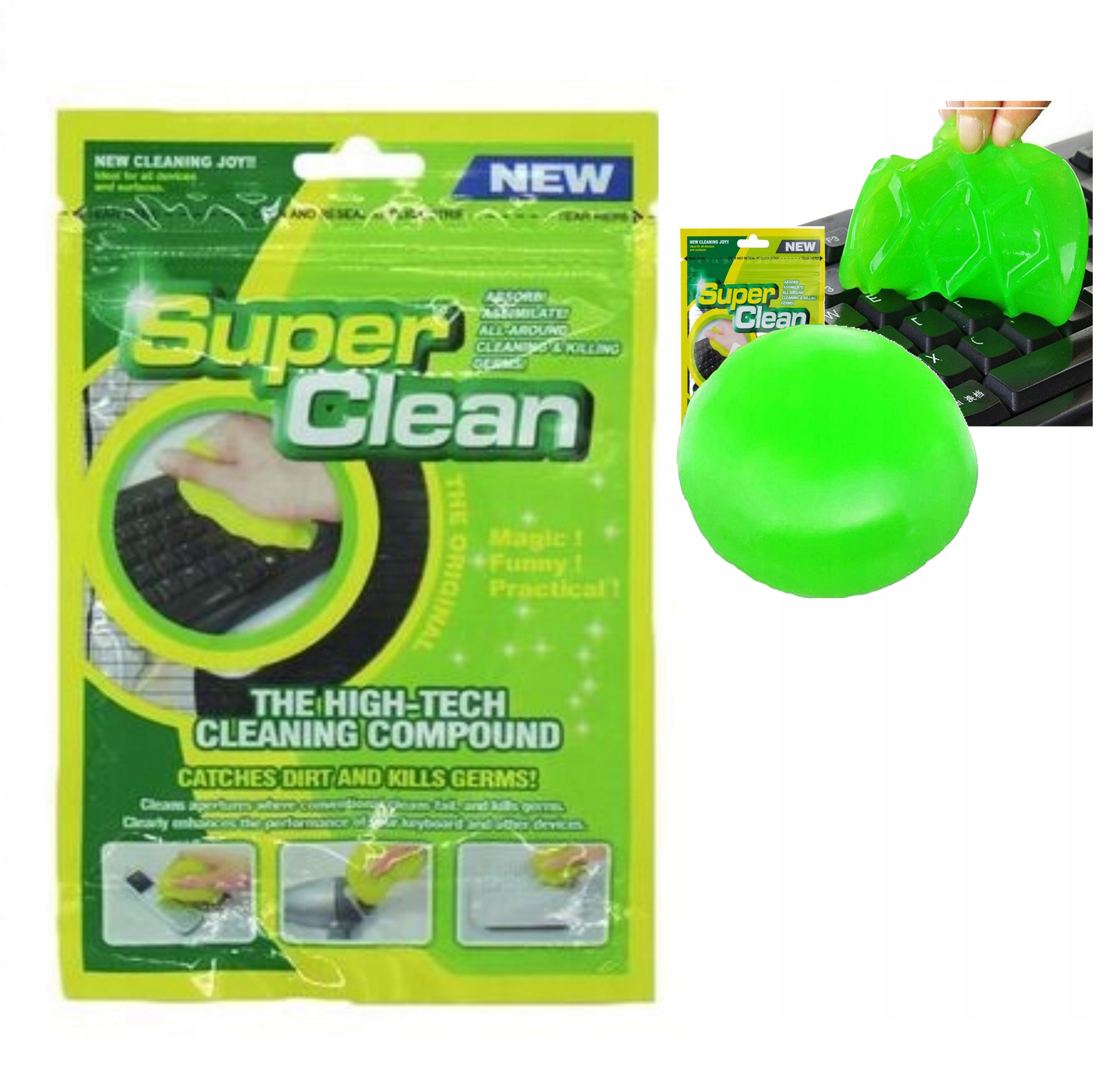- Гель Достаточно нажать на загрязненное место, Super Clean подстроит свою форму под поверхность и соберет всю грязь.