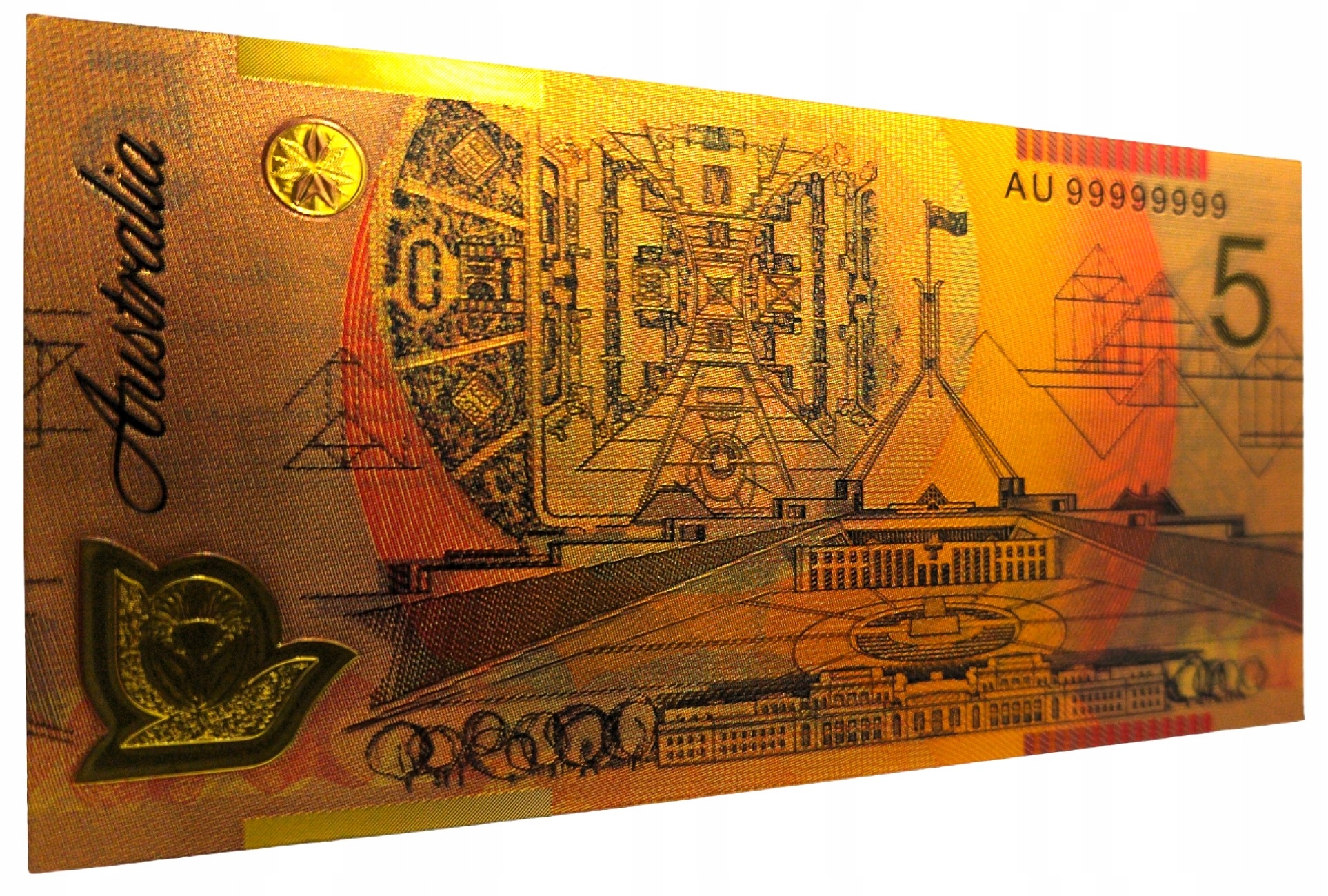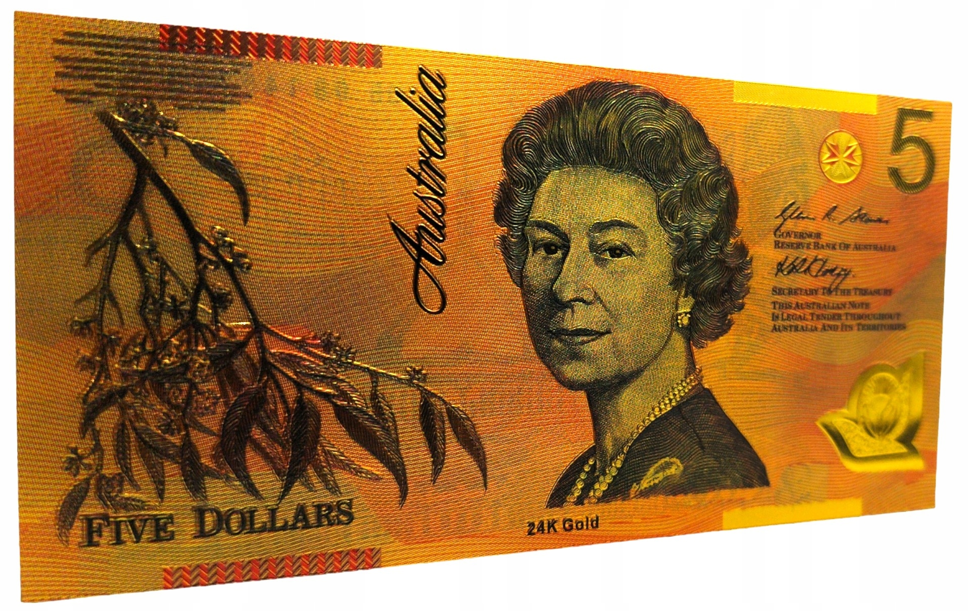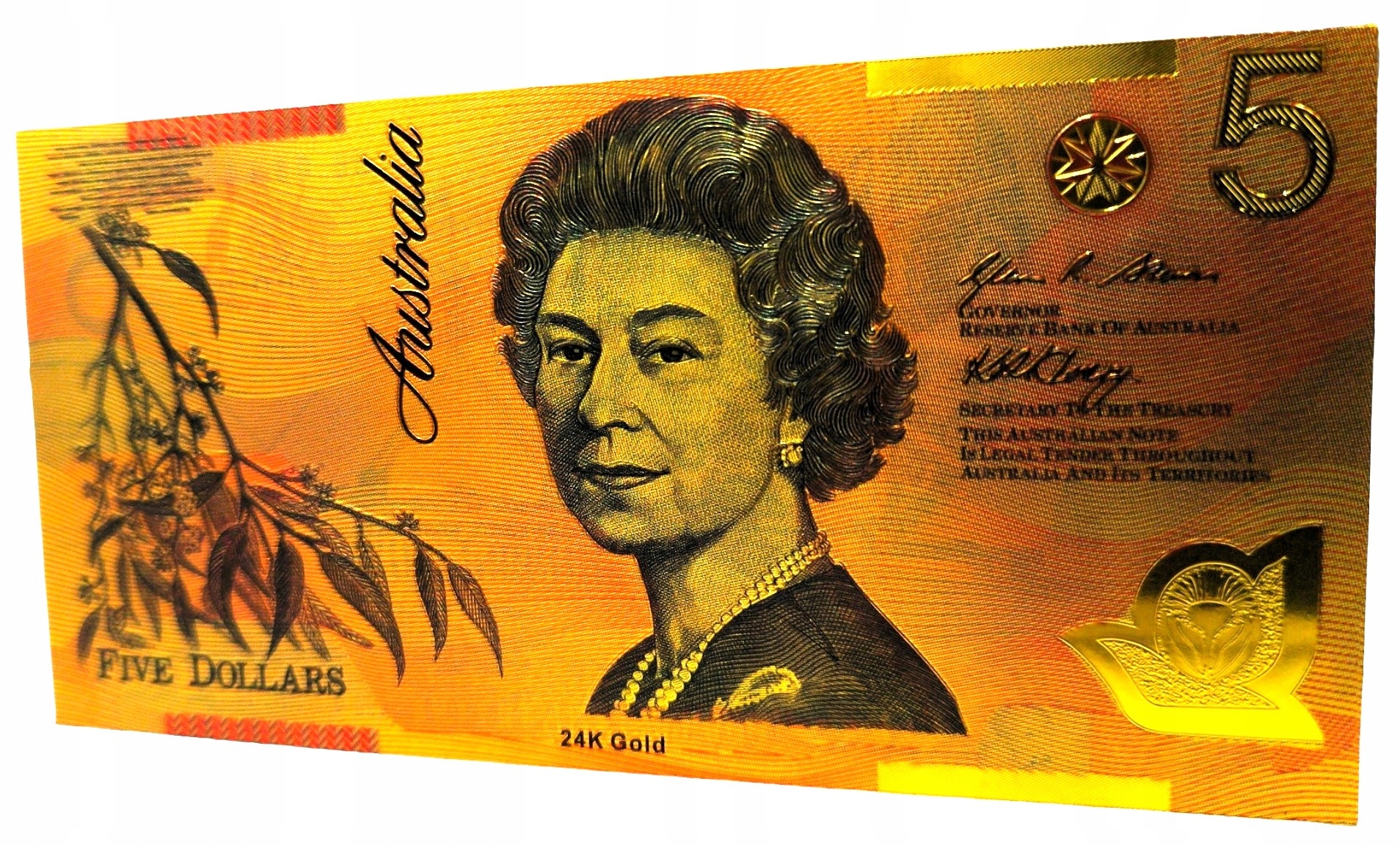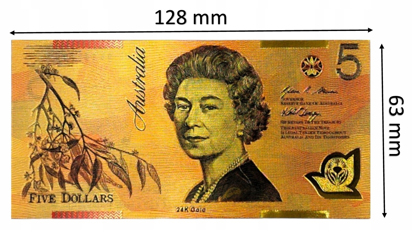 ELŻBIETA II AUSTRALIA 5 dolarów Wyjątkowy Kolekcjonerski Banknot Pozłacany
