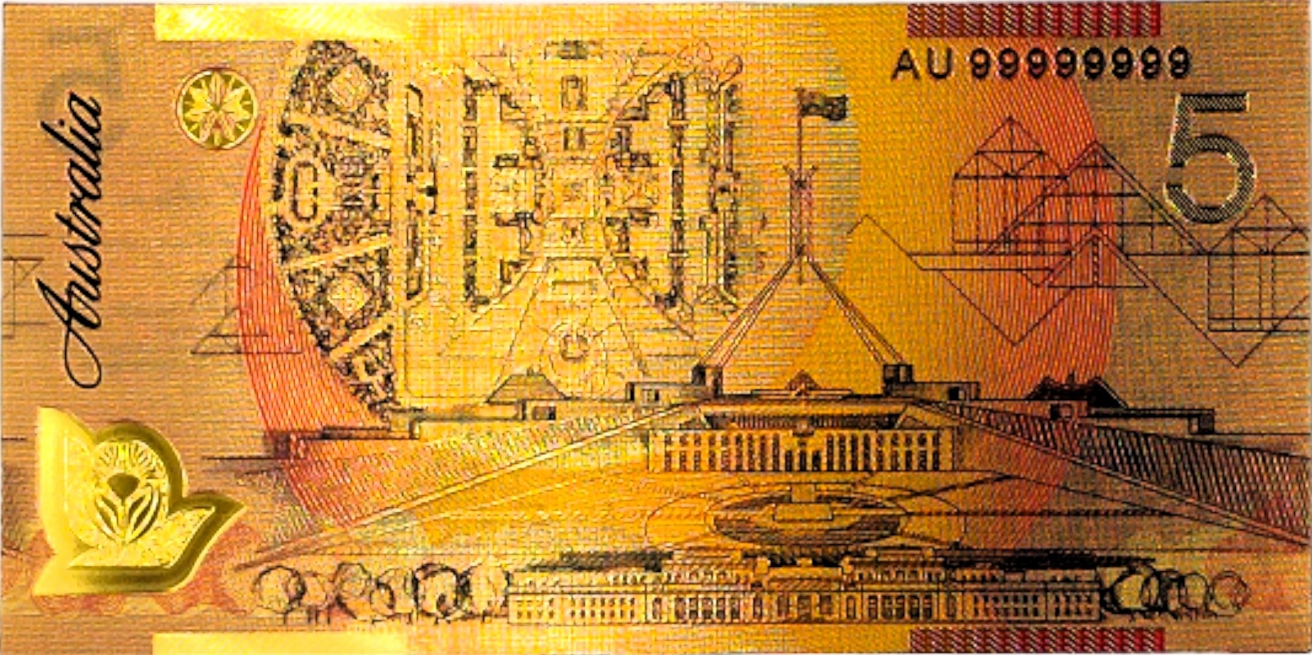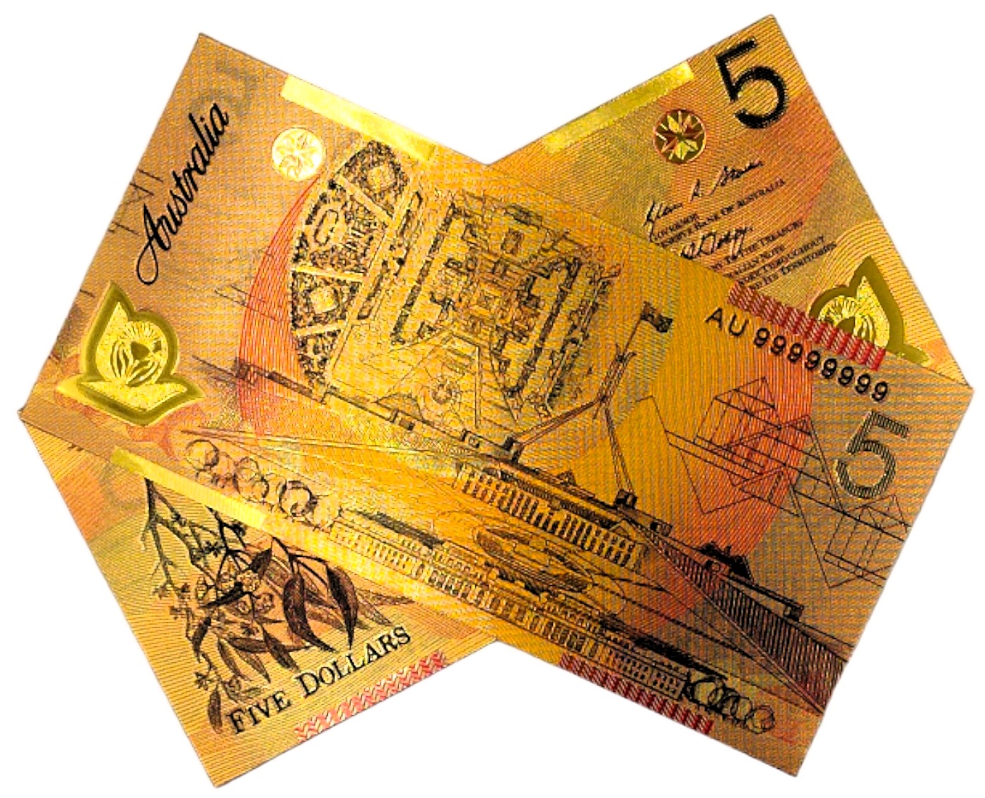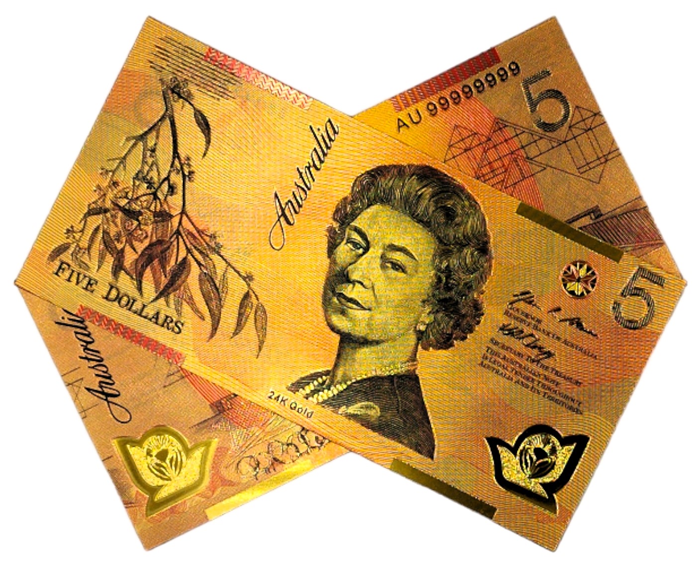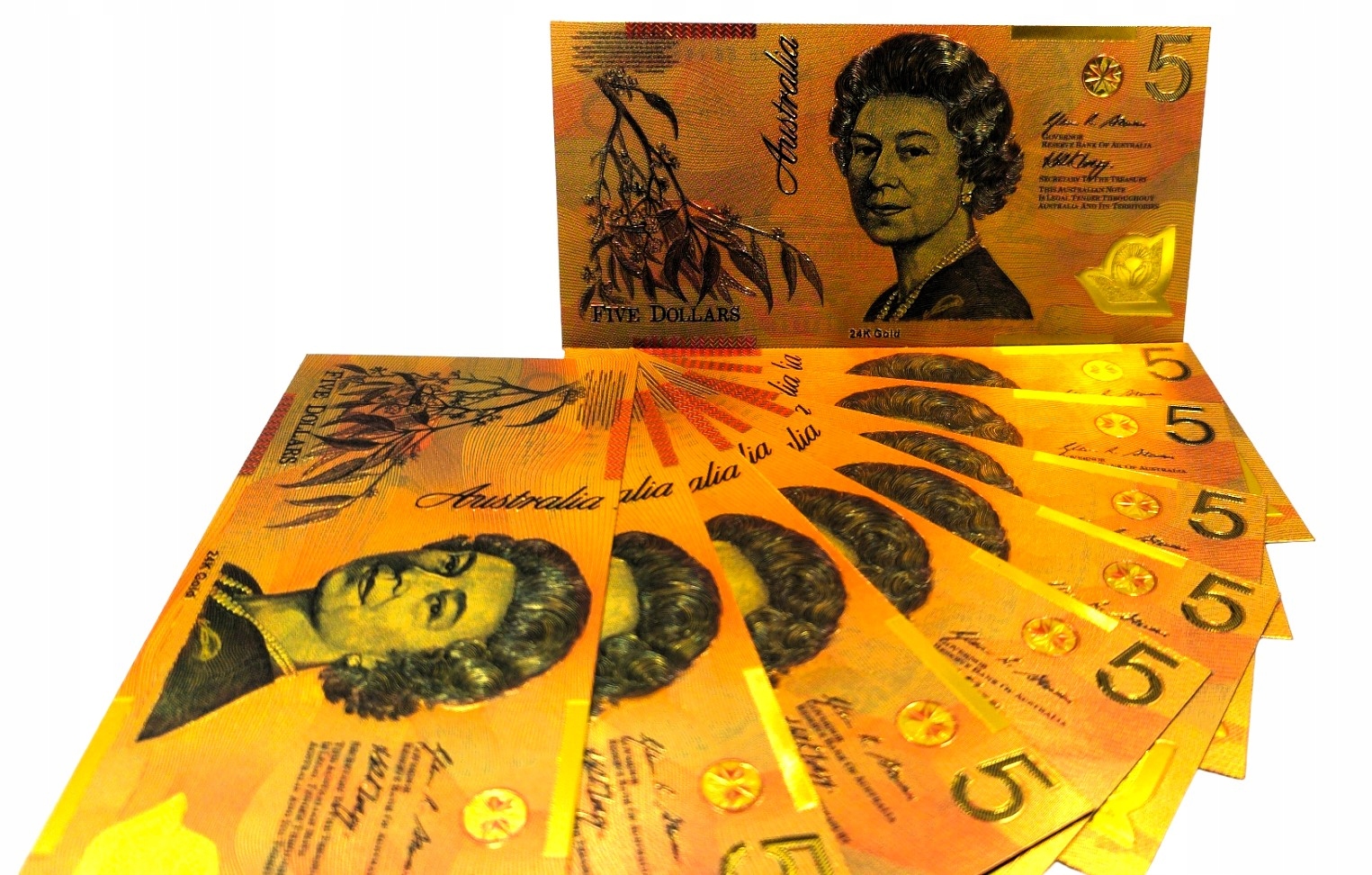 ELŻBIETA II AUSTRALIA 5 dolarów Wyjątkowy Kolekcjonerski Banknot Pozłacany
