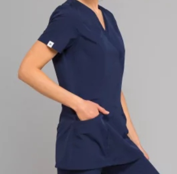 Легкая медицинская толстовка из воздушного материала с добавлением спандекса. Ткань струящаяся и прохладная на ощупь, что идеально подходит для теплых дней. Правильно сидящий, с нетрадиционной отделкой горловины, двумя большими карманами и одним поменьше внизу.