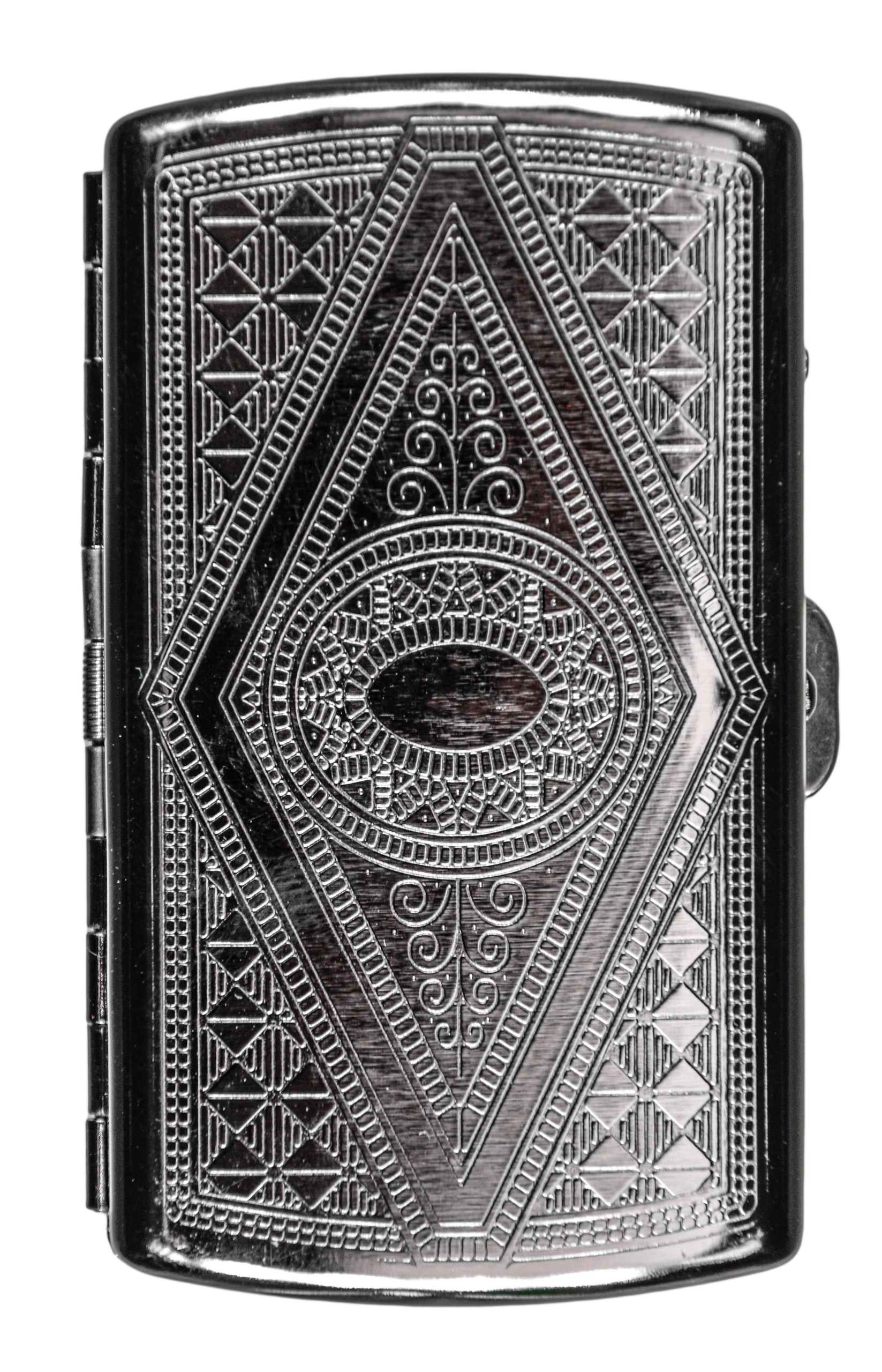 - Внутри есть место для 12 сигарет, которые удерживаются на месте благодаря пластине, а это значит, что сигареты не сгибаются и не режутся, как в случае с сигаретой. футляры с резинками-фиксаторами.