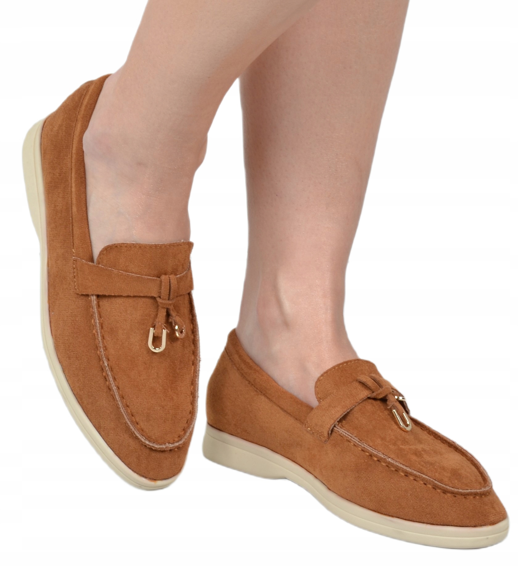 ELEGANCKIE DAMSKIE LORDSY ZAMSZOWE MOKASYNY BRĄZOWE