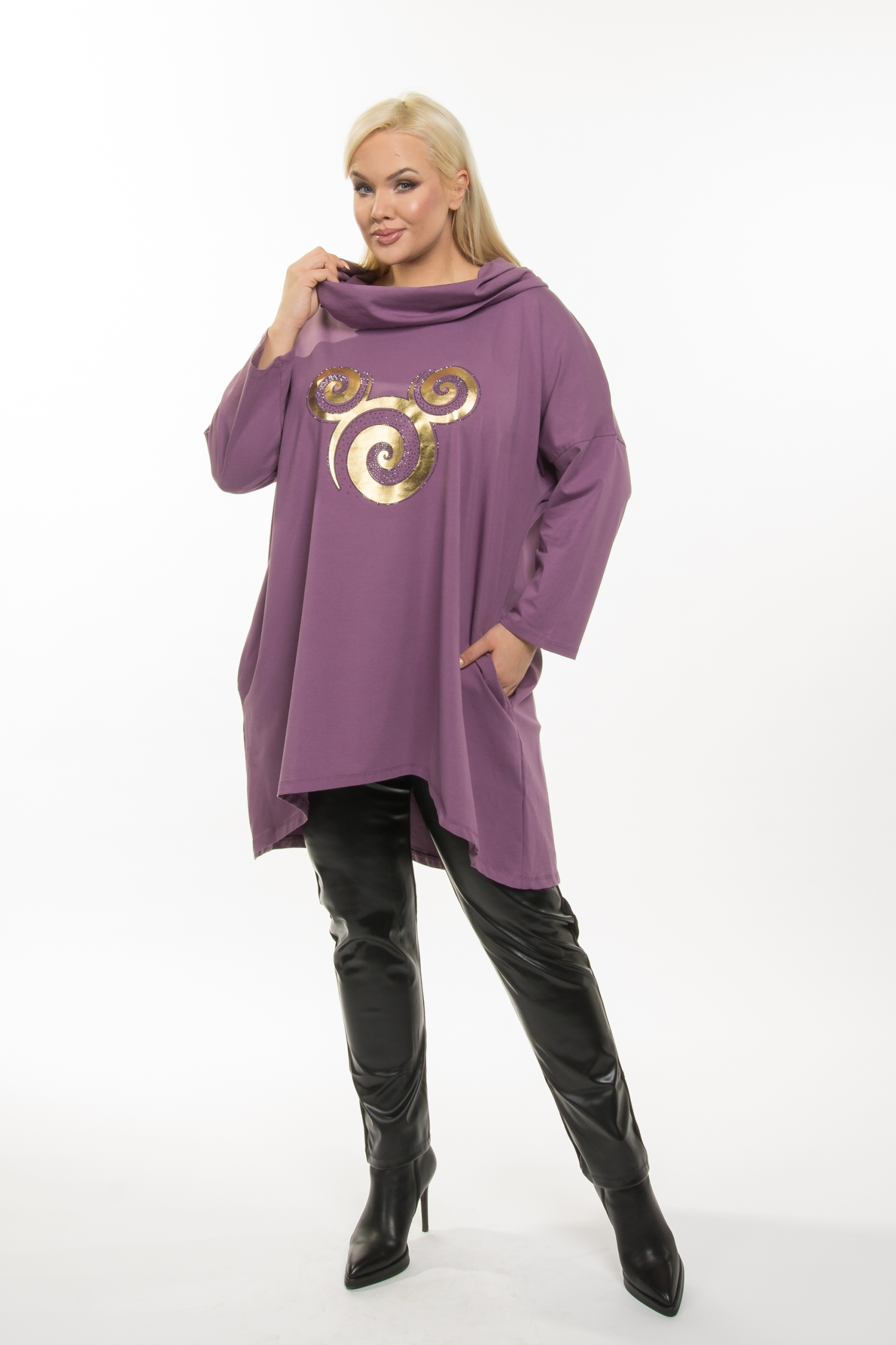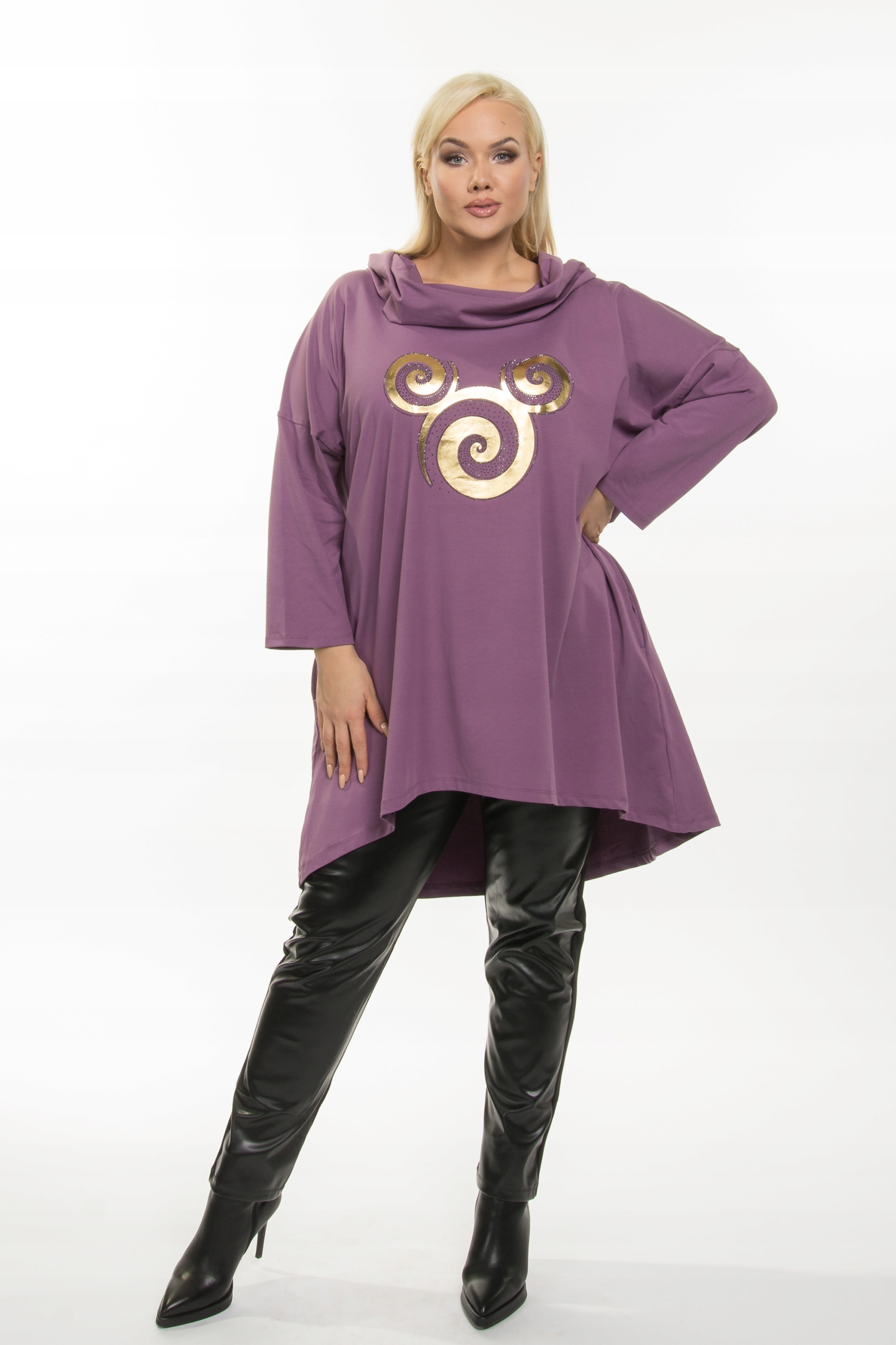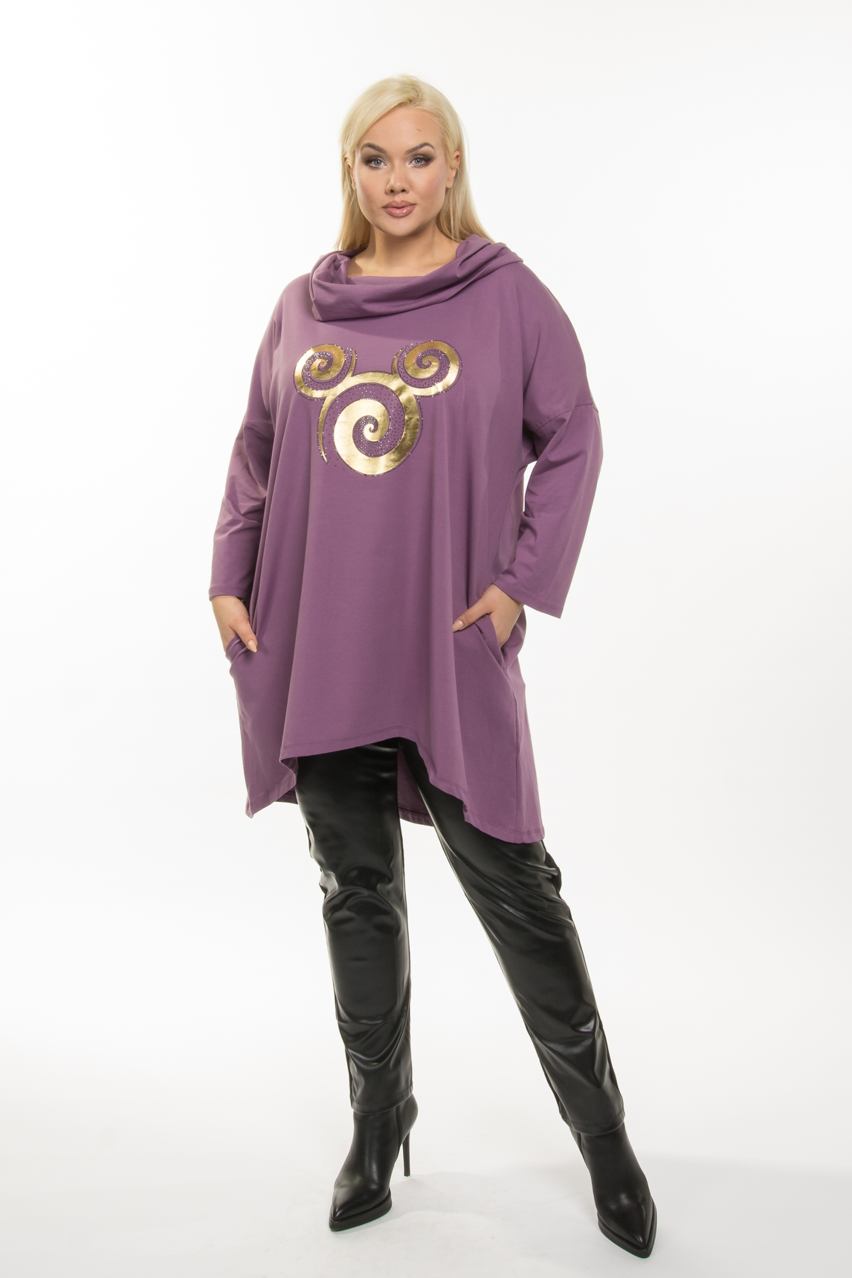 Элегантная женская туника асимметричного кроя oversize – это квинтэссенция комфорта и стиля, отличающаяся оригинальным дизайном и очаровательной золотой аппликацией. Это необыкновенное творение прекрасно сочетает в себе комфорт и модную выразительность, создавая уникальное предложение для женщин, которые ценят оригинальность.